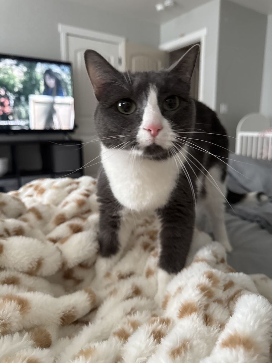 Lewis is a gray cat who I have had for about 3 years. He is 2 years old and can be a little shy at first. He usually takes some time to warm up to new people, but once he feels safe he is very sweet.