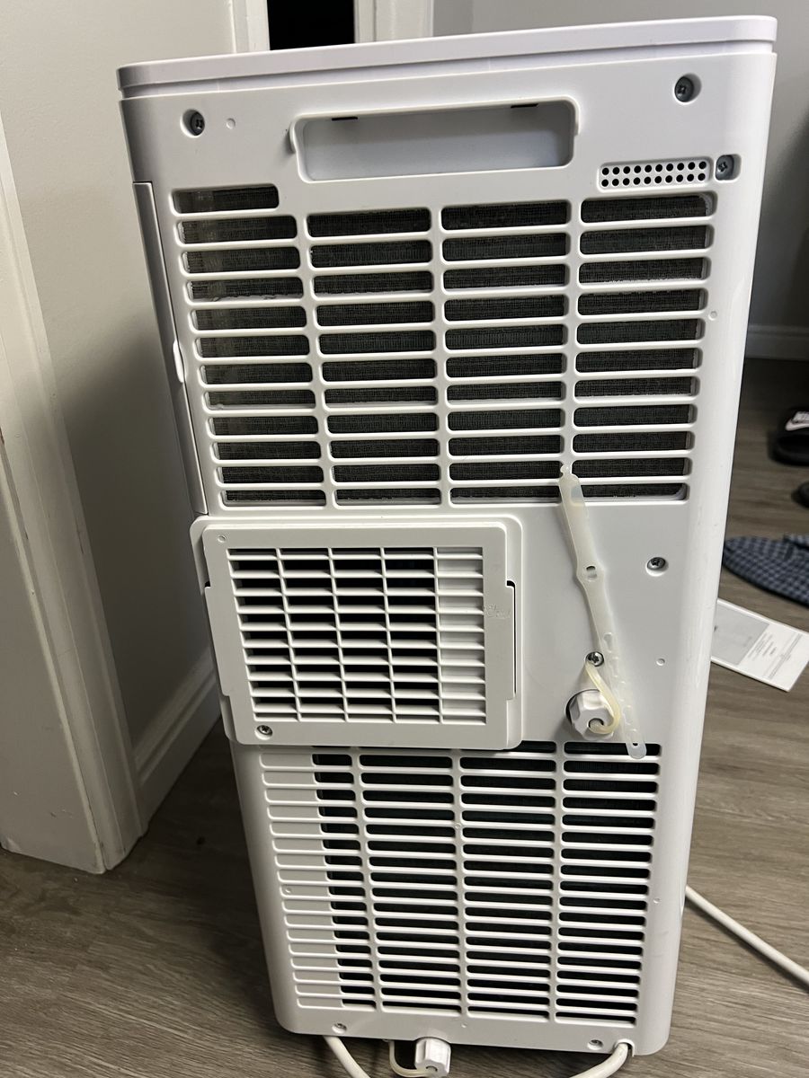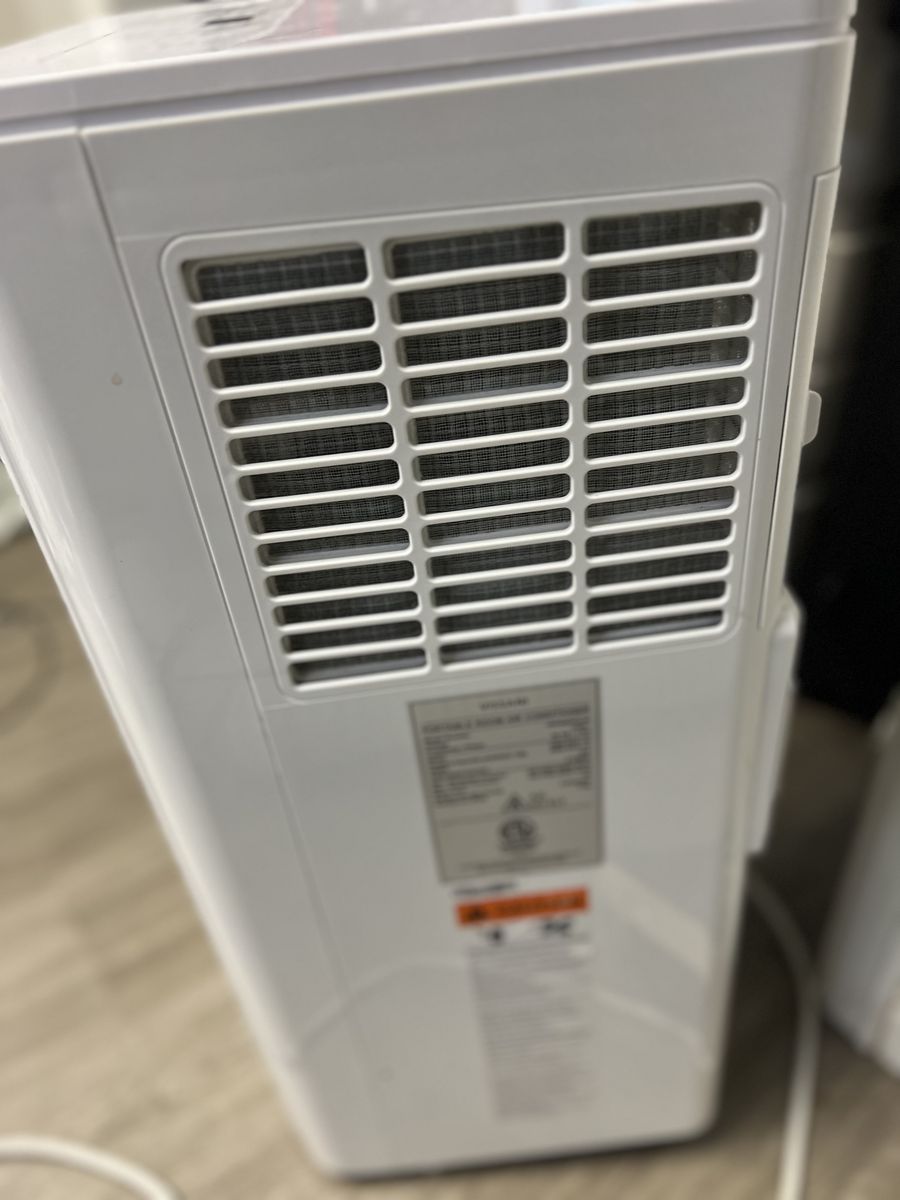 ZelleThis unit is in great working condition! Has no issues. It has fan modes and a built in dehumidifier. It comes with the manual, hose, window blockers, and a lining to protect the windows.