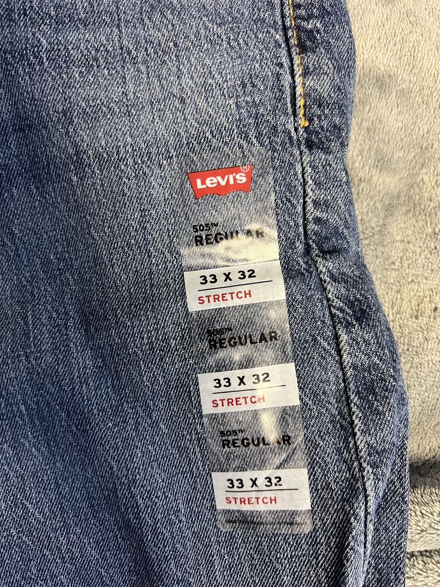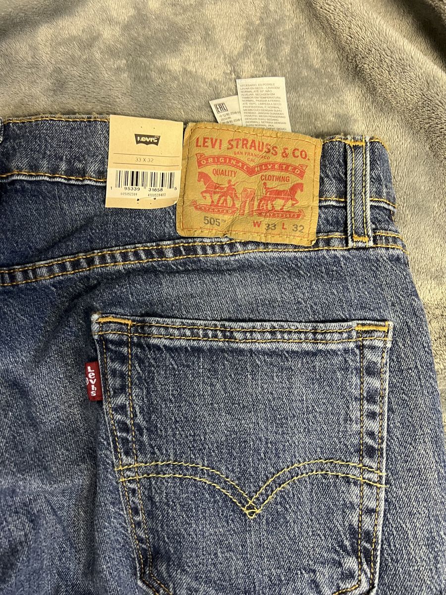 ZelleNever worn before Levi 505 jeans 33 waist 32 length. These have no rips, tears or any other issues.