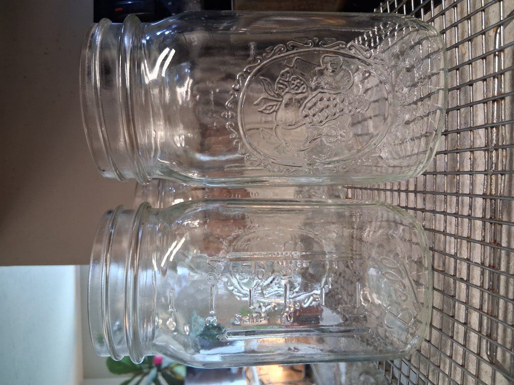 Vintage killer wide mouth lt blue Ball canning jars. Set of 4.
