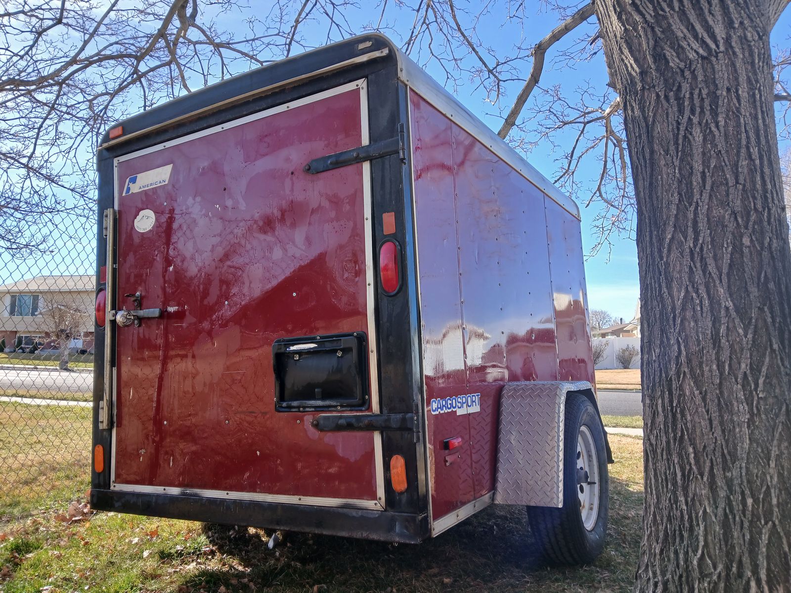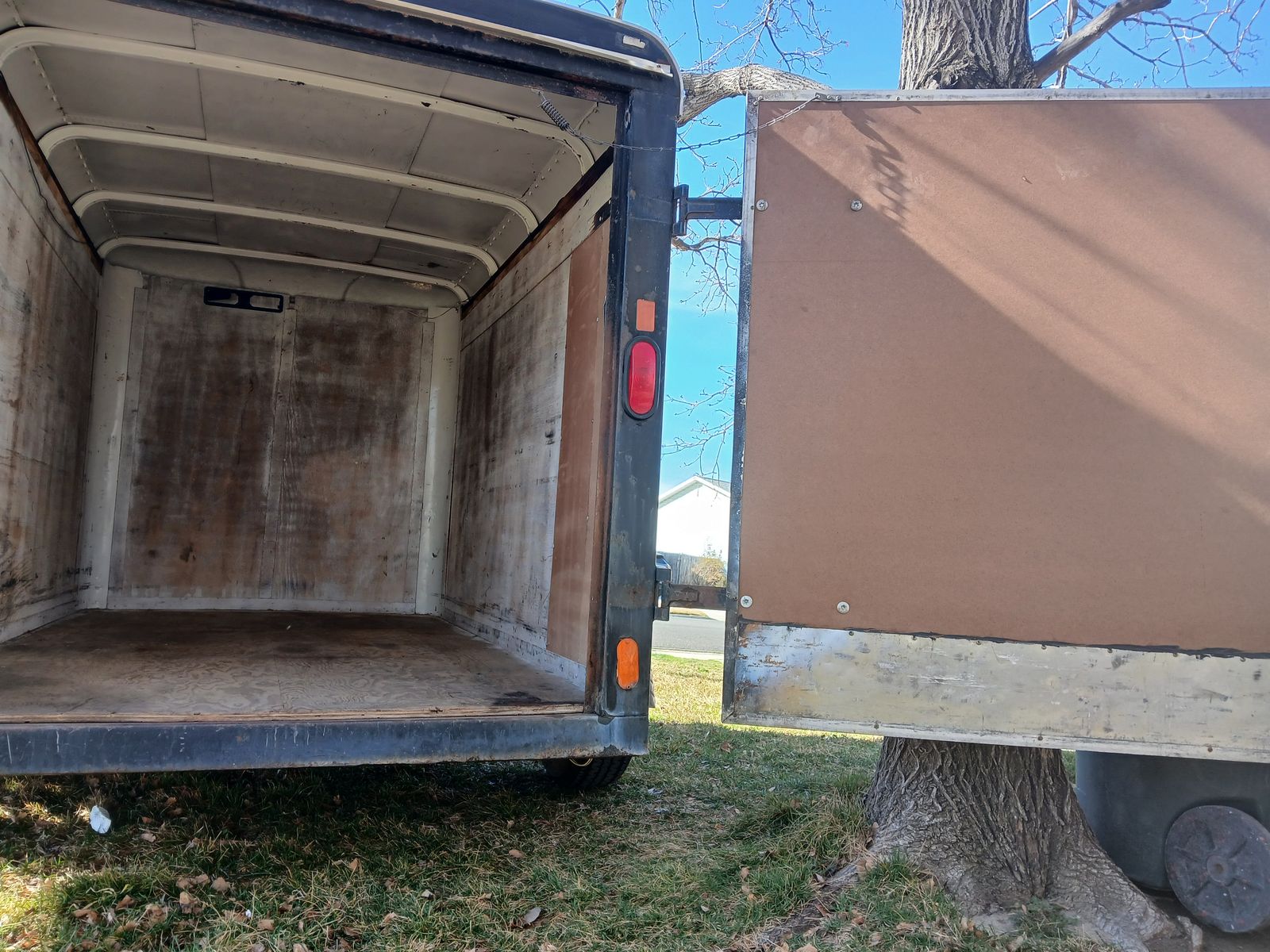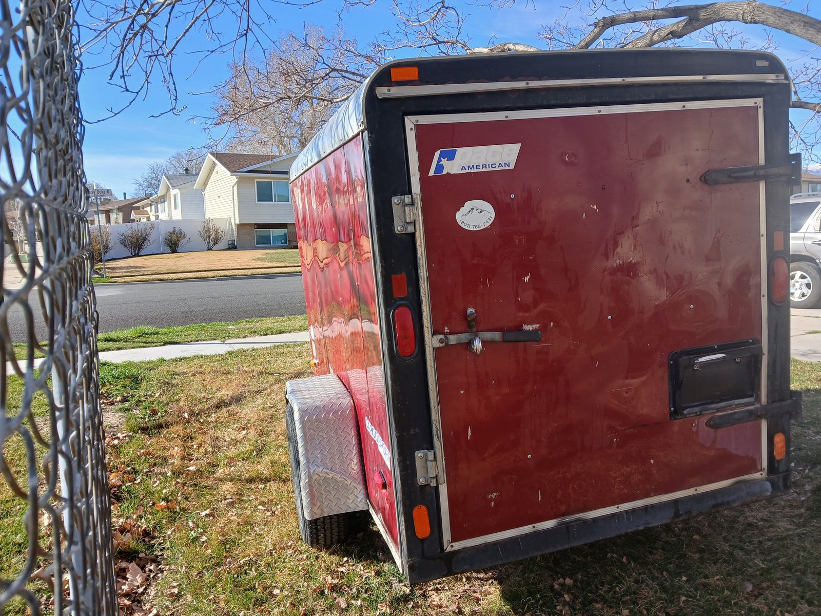 Trailer enclosed 5x8 ,101" long 56'wide,60" tall inside measure,2 inches ball ,round electric connector, front jack spare tire included, clean title in hand,single barn door,great tires size 15 around 75% life,asking 2750 or best offer, cash Trailer is in west valley, everything works on it, text preferred at 8016886488