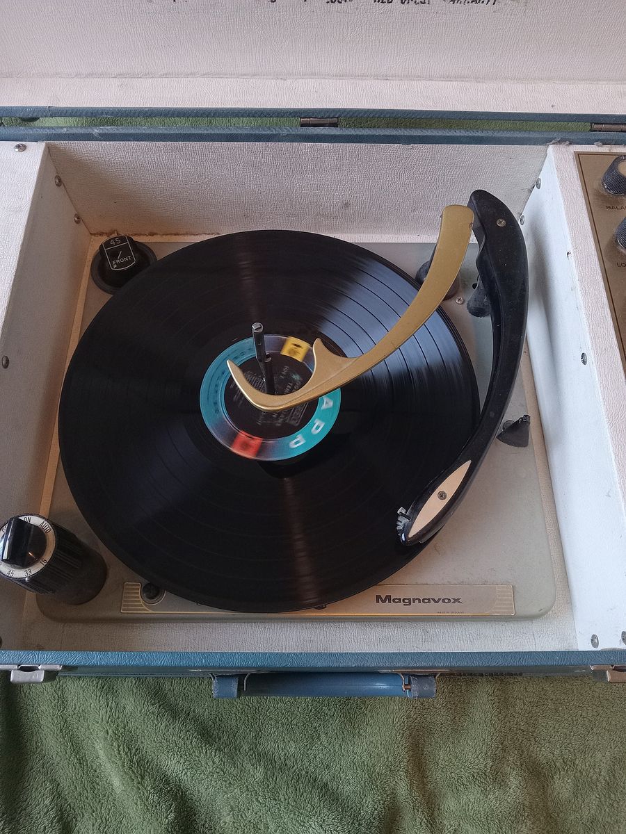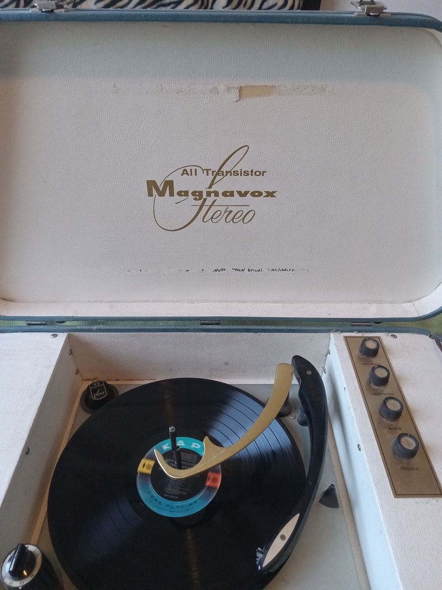 Vintage Mgnavox, Micromatic portable luggage record player. This is a working unit, very good condition, with needle. There is some crackling from the speakers but it is probably from sitting for decades on the shelf. $500 OBO