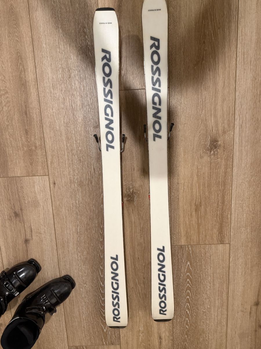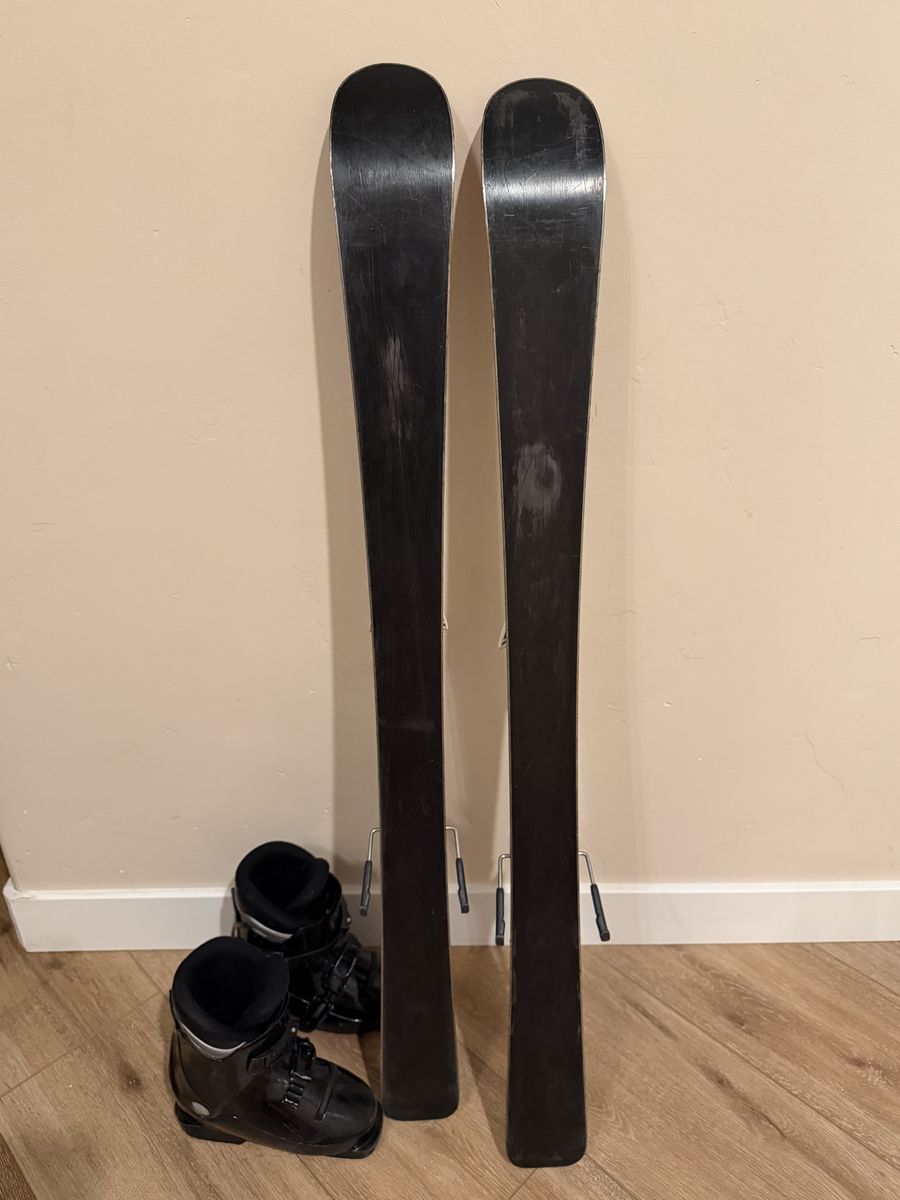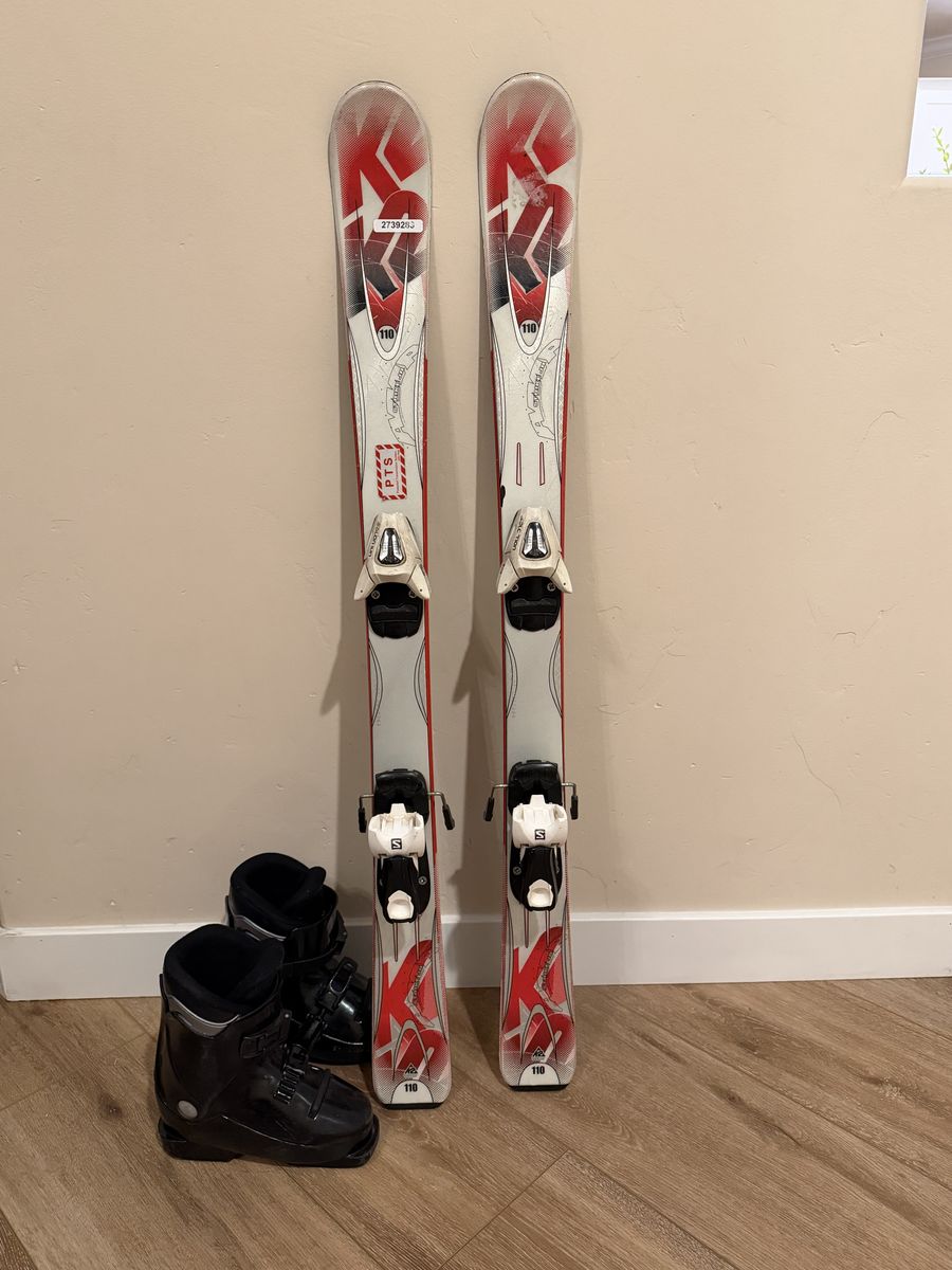 Two kids skis and one pair of boots. Hoping to sell together for $75 but can do separate as well\