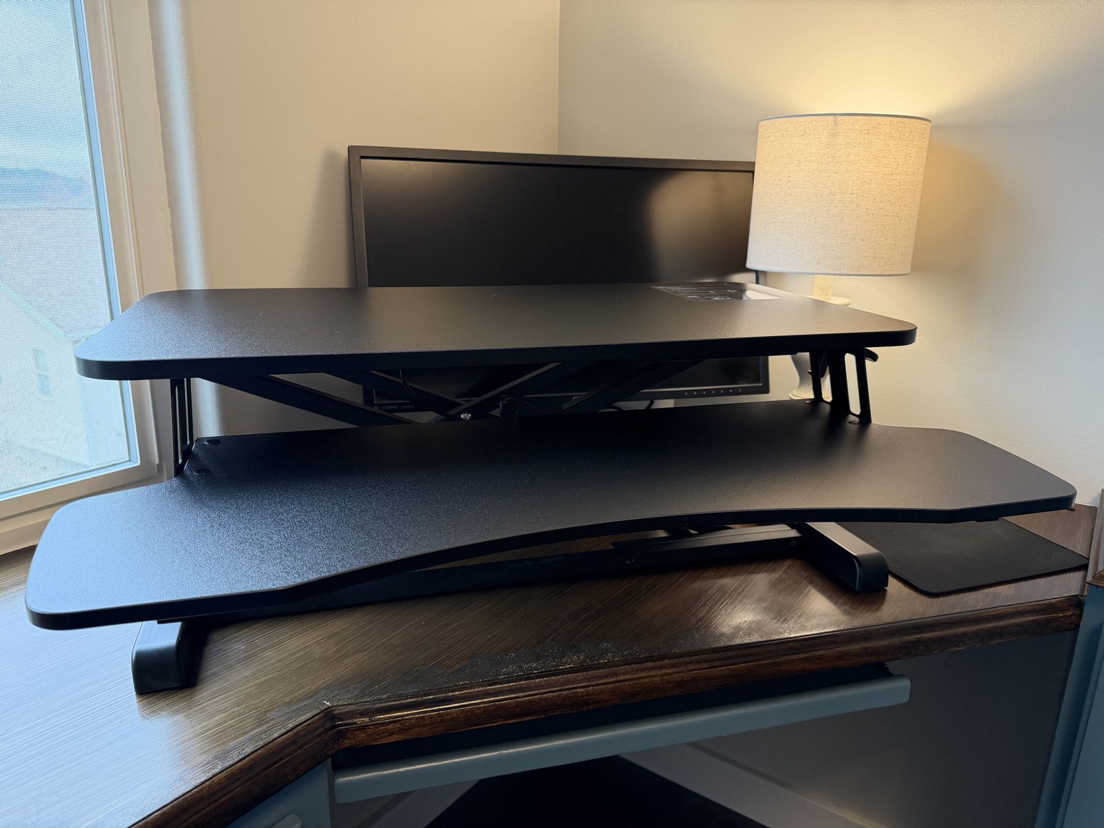 VenmoEasily expandable desktop workstation. Large enough to hold laptop, screen, keyboard, mouse, etc.