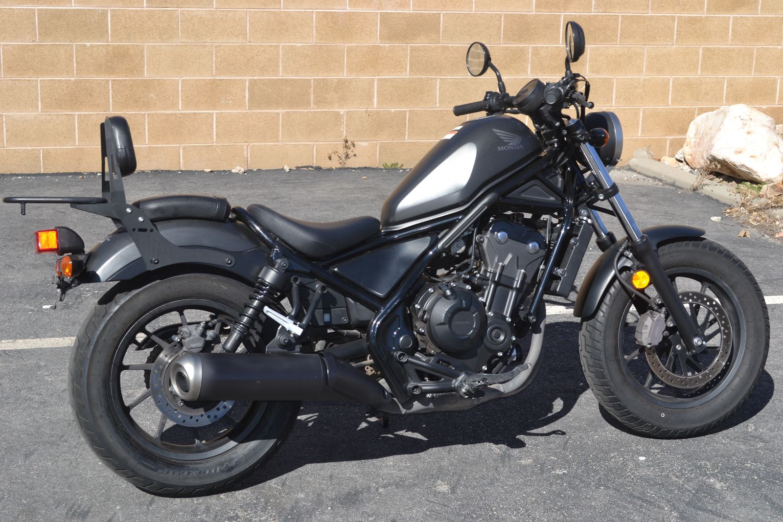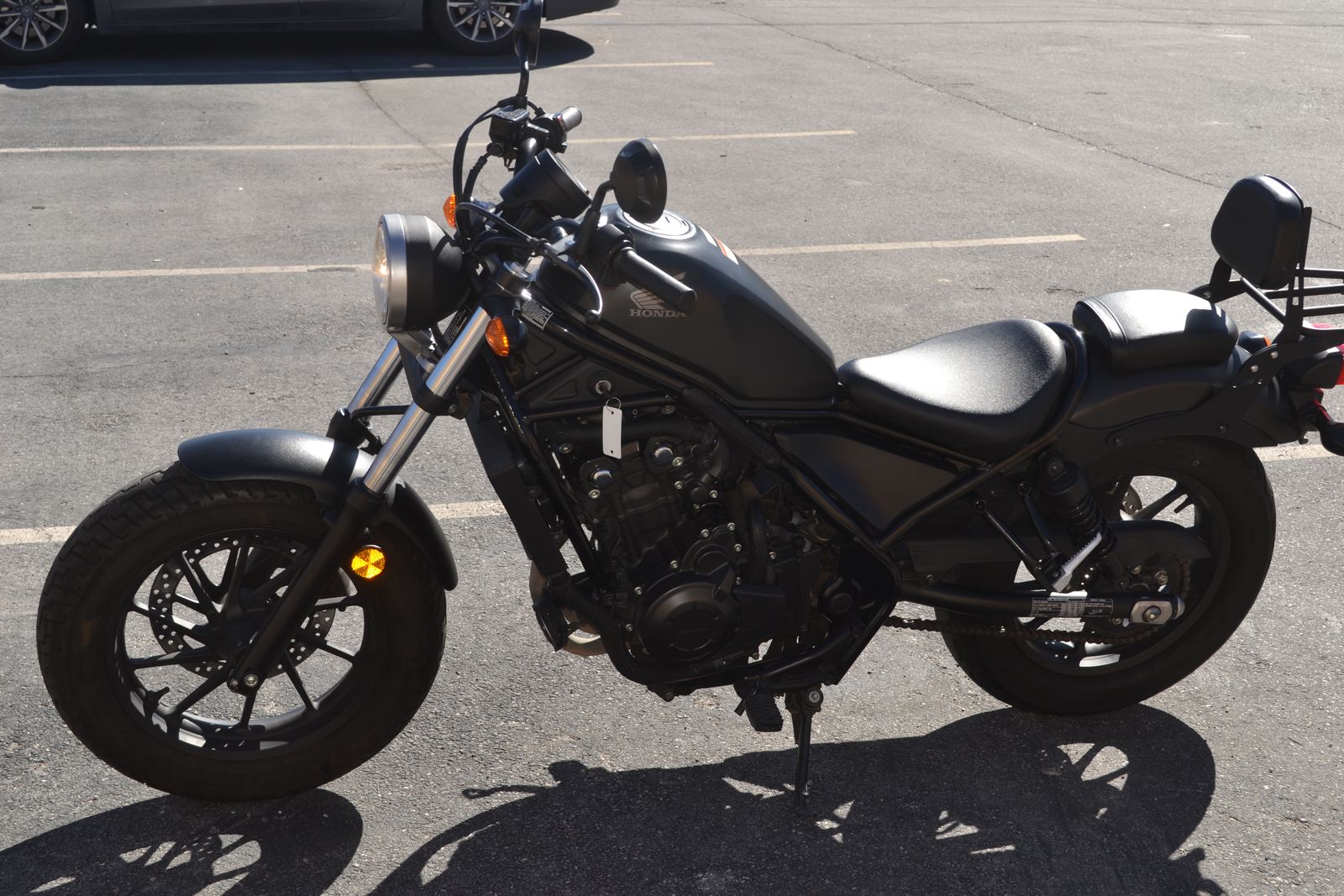 2019 Honda Rebel 500 that has 9,500 miles. It comes with a passenger seat, pegs, sissy bar backrest, and luggage rack. Clean and clear title.