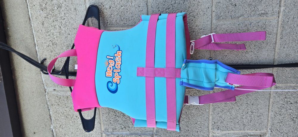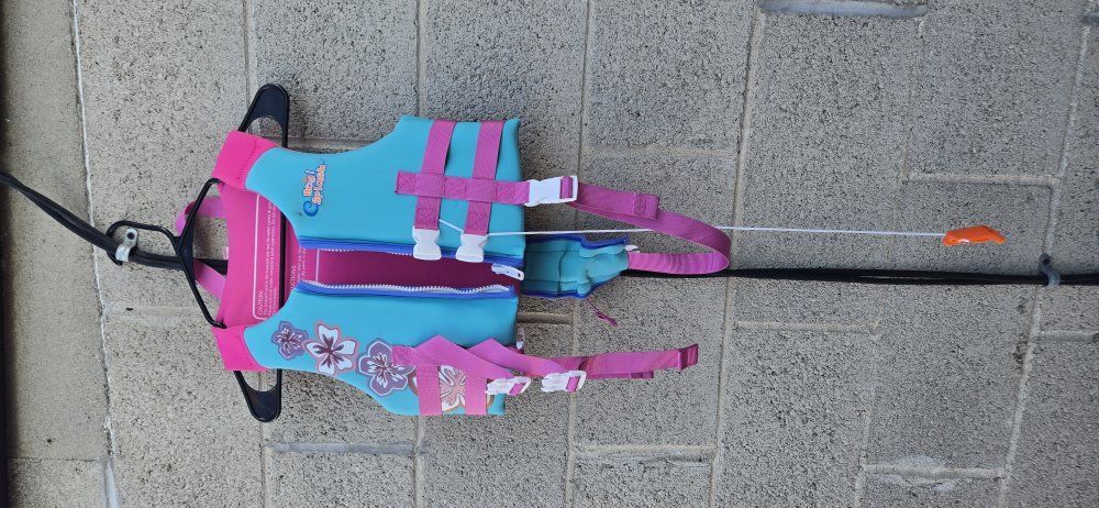 Girls life vest size medium also has whistle attached to it. asking 15 obo.