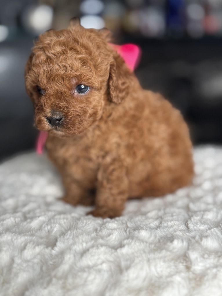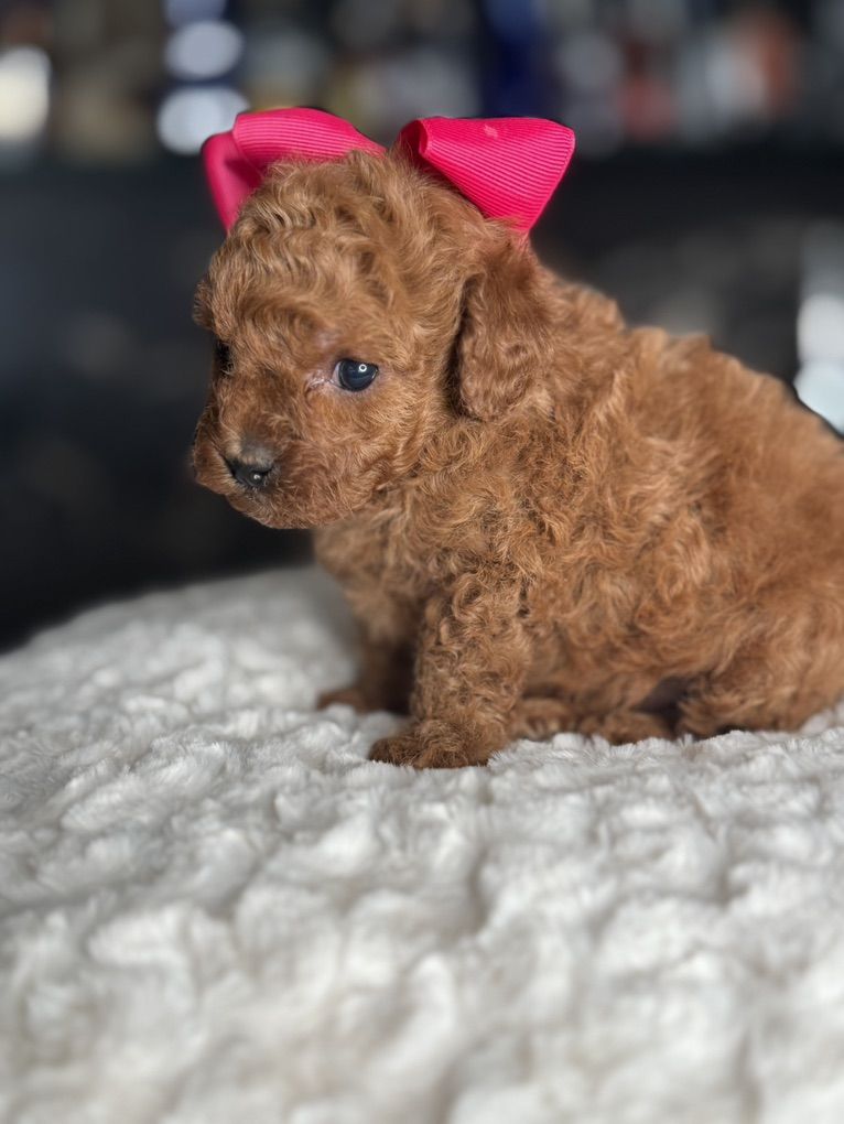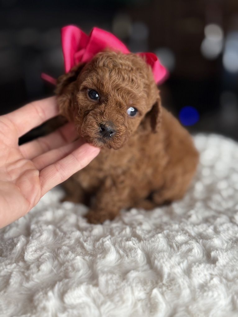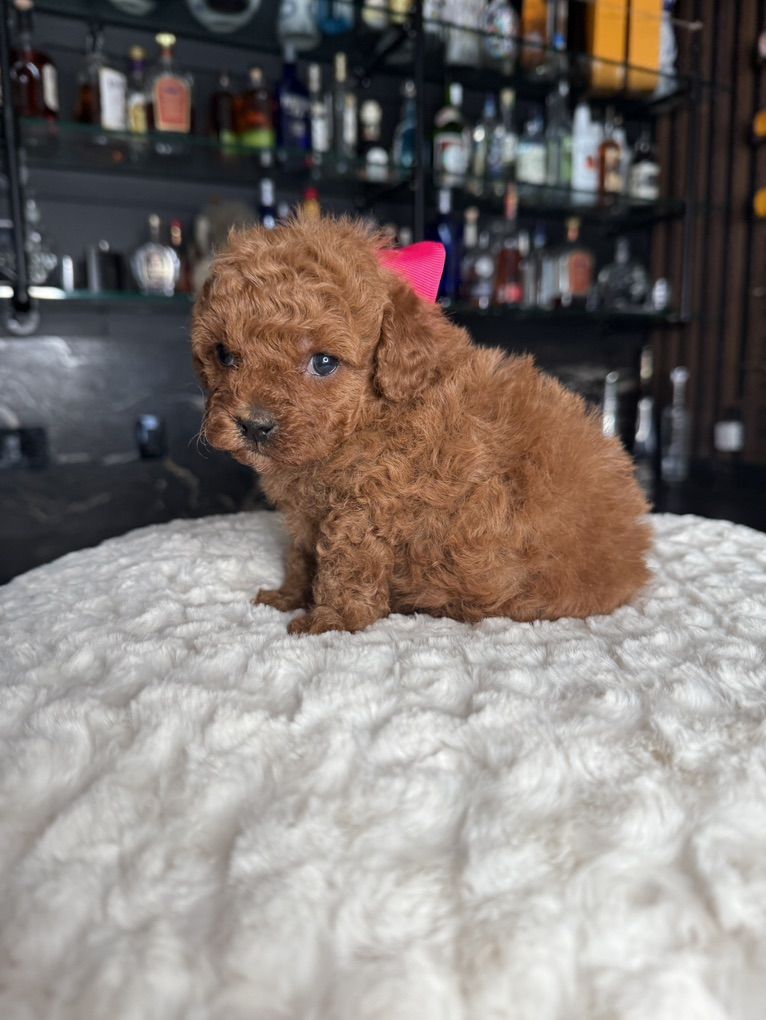 These beautiful Mini Poodles are expected to be approximately 5-7 pounds full grown, with mom weighing 8 pounds and dad 4.8 pounds. They are non-shedding and come from parents with exceptional temperaments who are fully health tested. Dew claws have been removed, and their tails have been docked. puppies are dewormed at 2, 4, 6, and 8 weeks, and they receive their first set of vaccinations before going home.