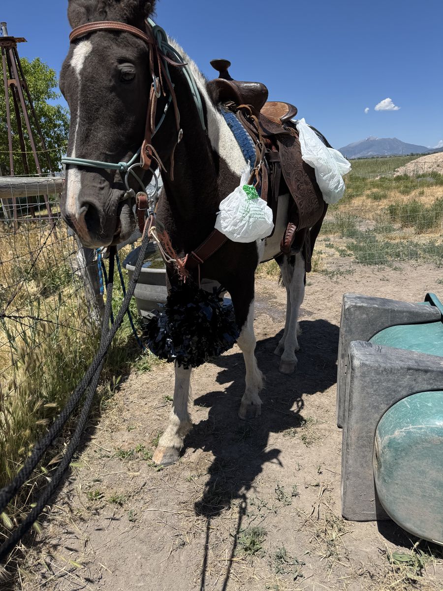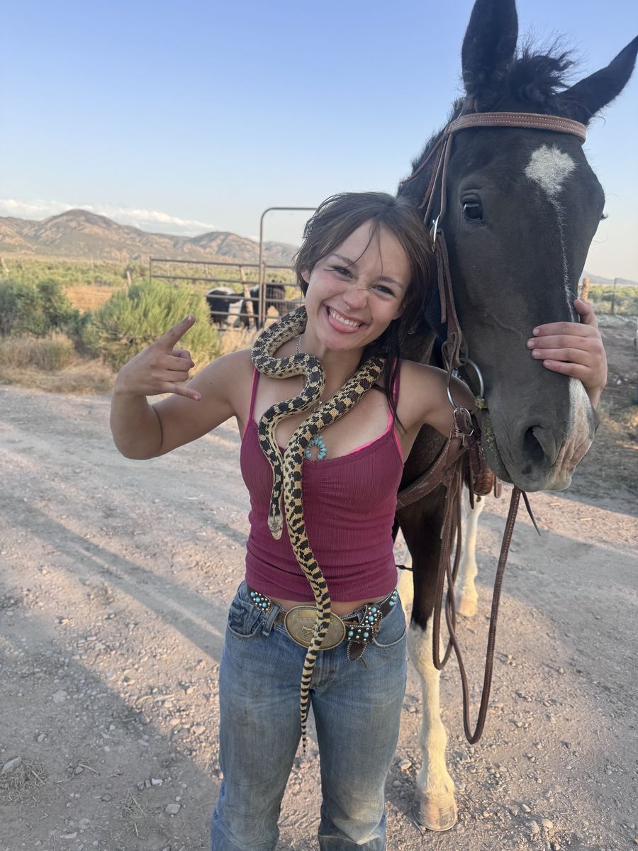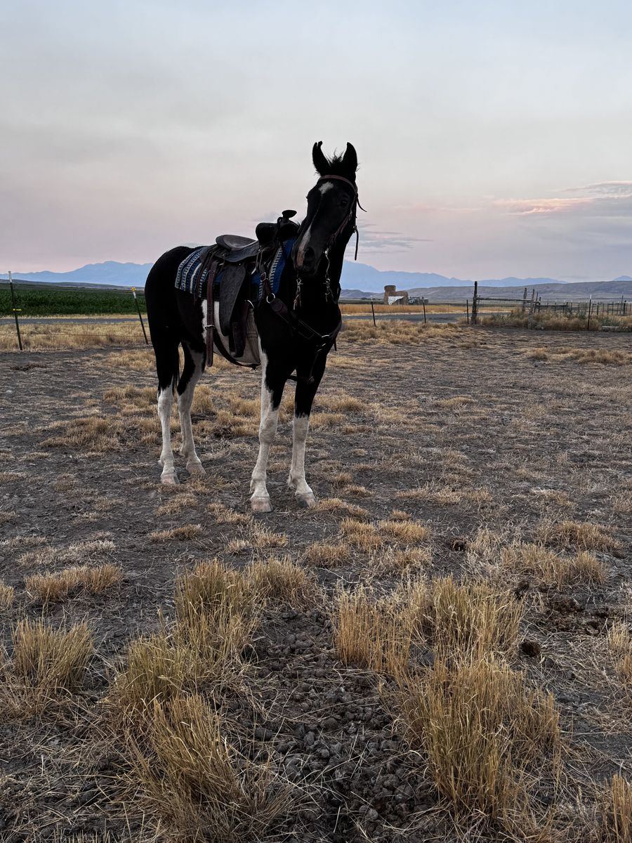 Hi, her name is Arizona. I got her at three years old, completely untouched. She's pretty quick. I’ve run her on barrels a couple times, but she mostly did trail rides and pushed cows. She's an amazing horse. She stands amazing for the farrier. I’ve shot a cap gun off of her and put people who have never ridden before on her. The only problem is shedeveloped a rearing problem a couple months back. My dad put a guy who has basically never touched a horse on her and tried to make her back up, and she freaked and completely flipped over. I got a welding job in another state and unfortunately won’t have time for her. I'm really sad I can’t be her forever home.