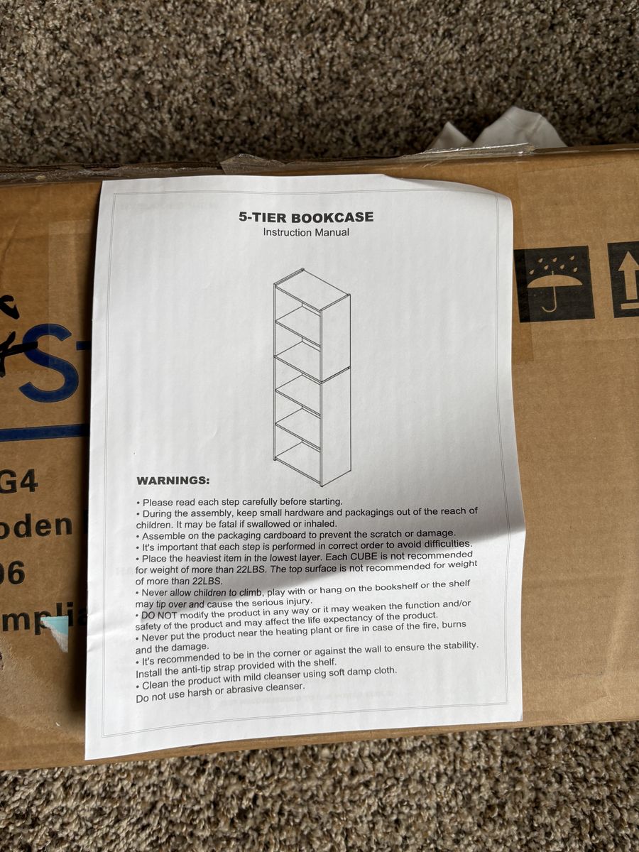Features: • 5 open storage shelves • Modern minimalist design • Approx. 52” tall × 16” wide × 9.5” deep • Holds about 22 lbs per shelf • Easy assembly with included instructions
