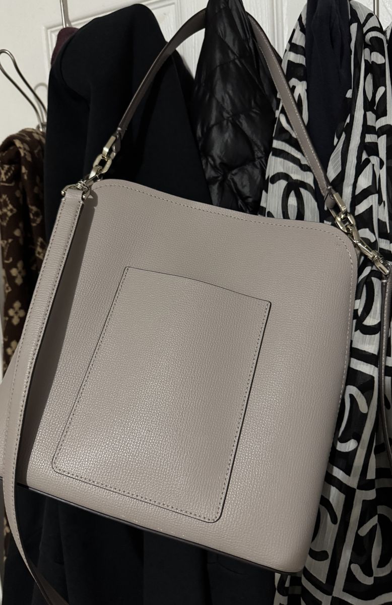 VenmoRefined grain leather bucket bag, taupe color, perfect for spring/summer/Easter.
