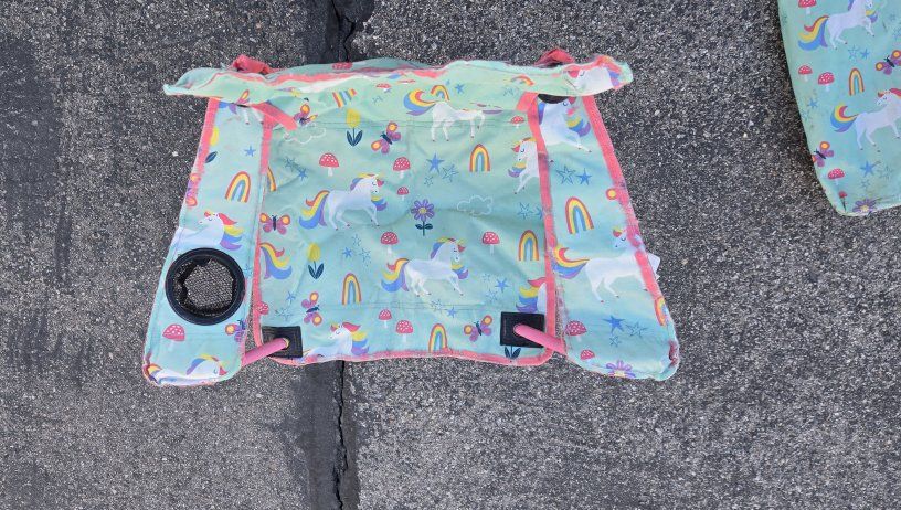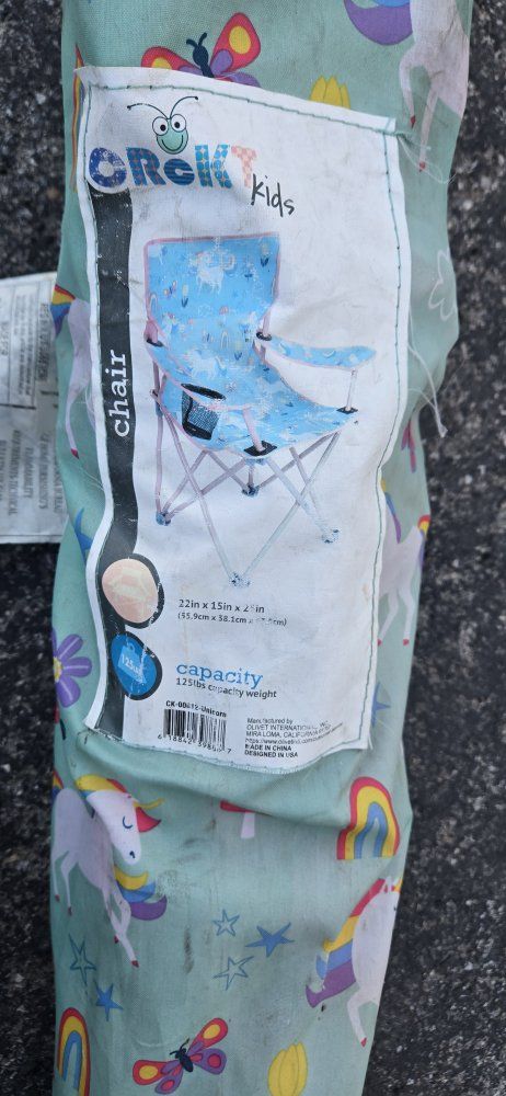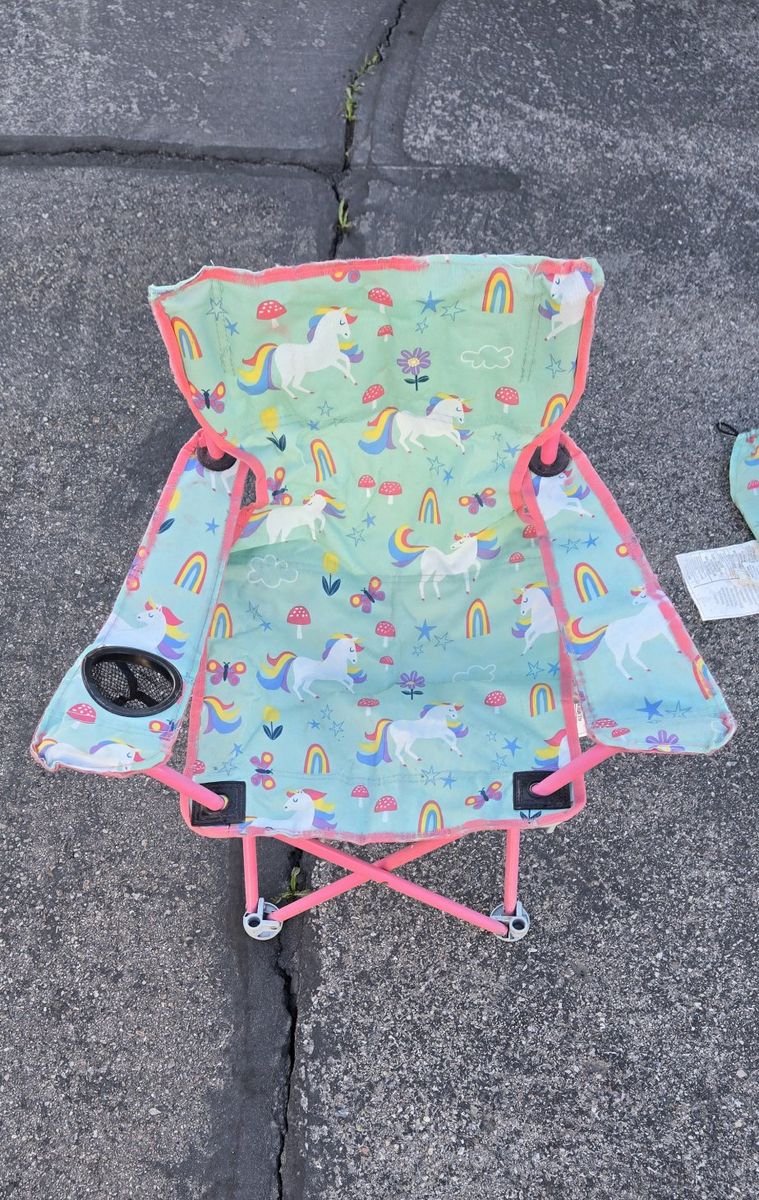 Girls camping chair with unicorns and rainbows. Asking 5 obo