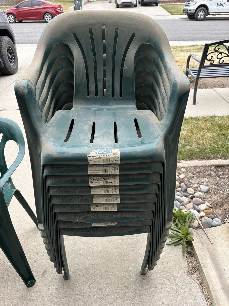 I have 10 green resin stackable chairs that I’m selling. They are dirty, but in good condition. I just don’t need them anymore. I’m asking for $50 for all 10 of them. You can text me, Brian @ 801-971-3550. Text is best. Thank you