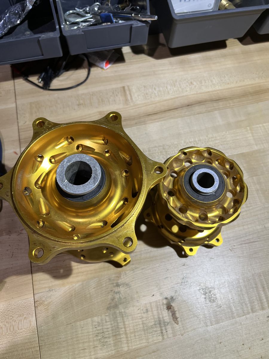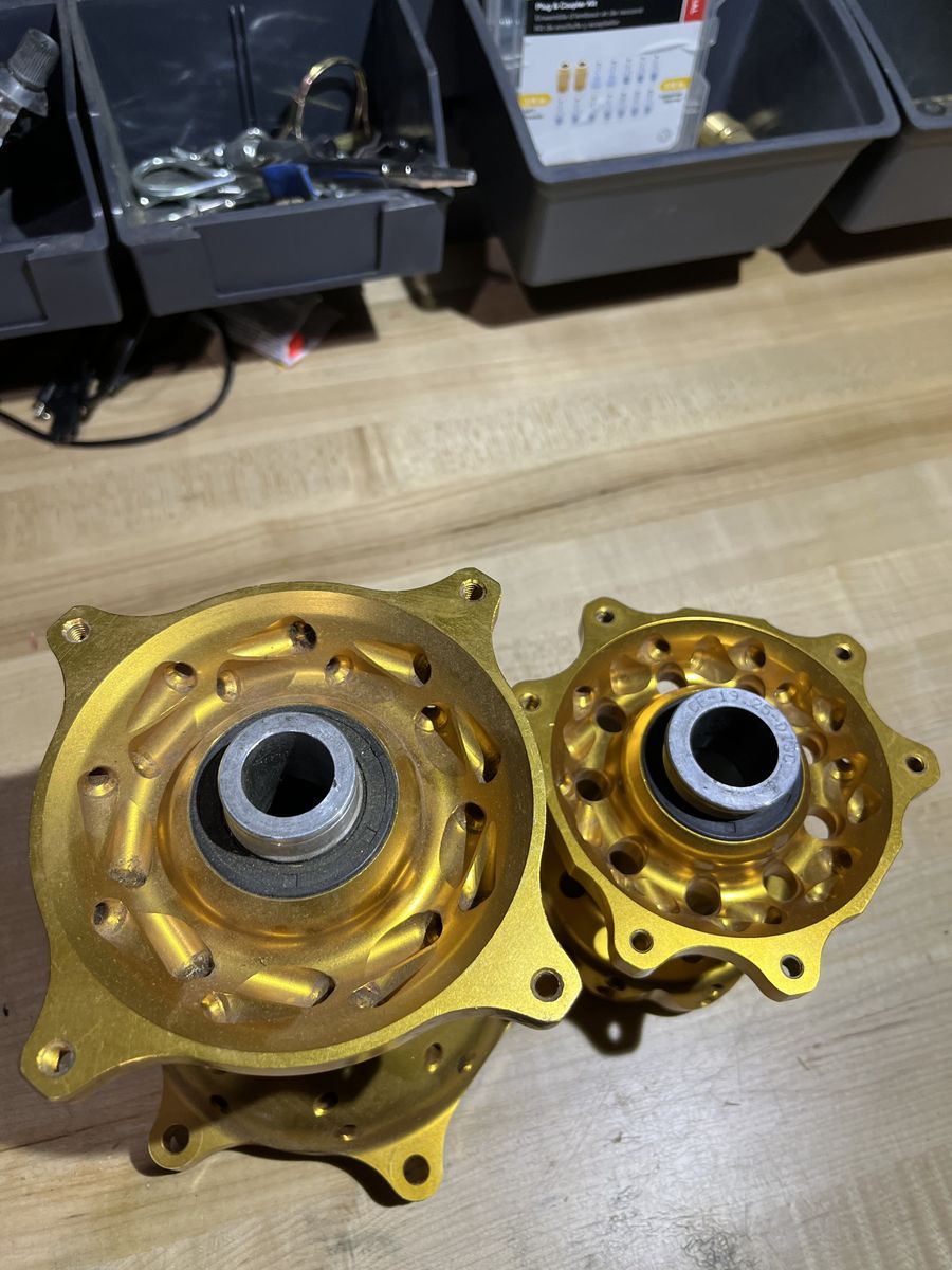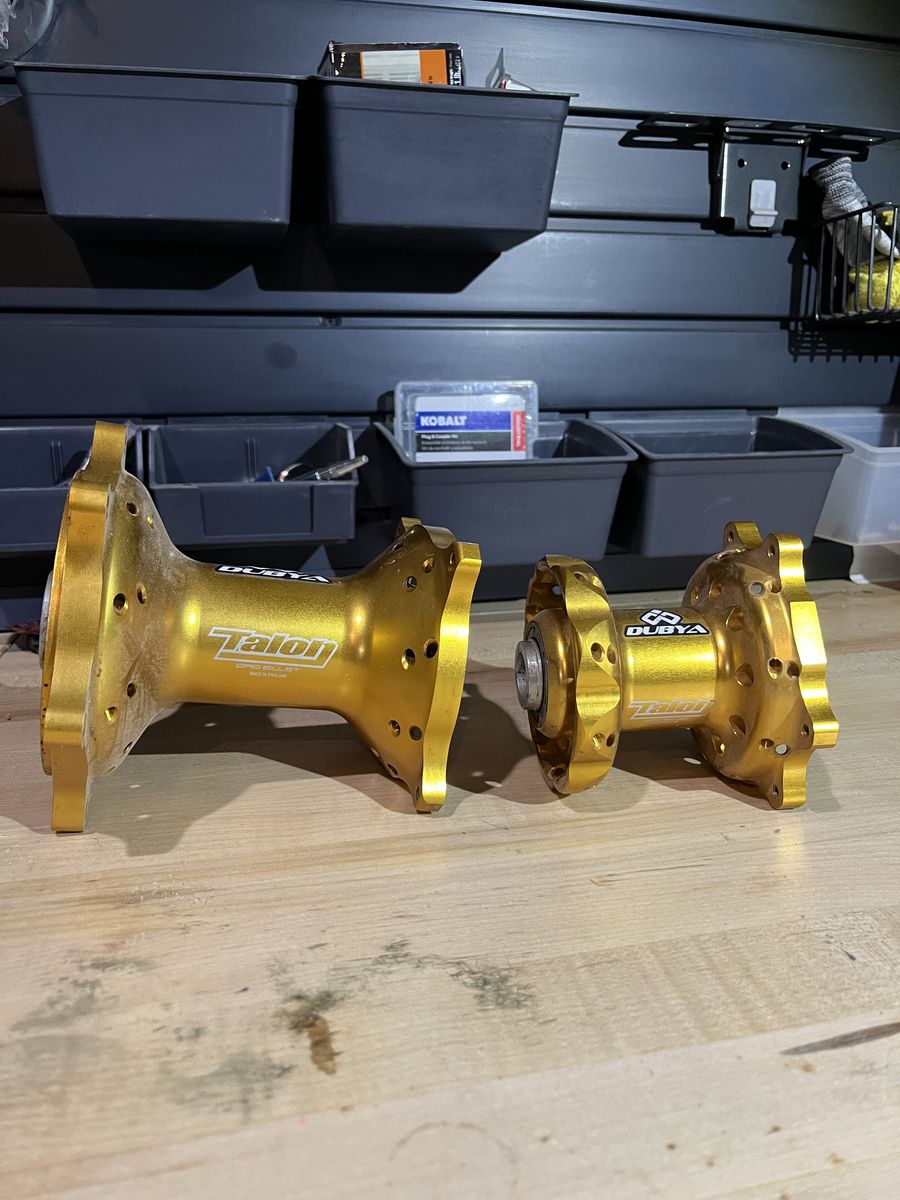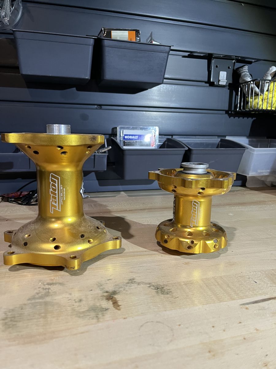 VenmoBlack Excel Rims. Gold Talon hubs. I have a 19" and 21" available as well as hubs. Both rims and hubs came off of a 2017 CRF 450 R. The 19" rim is 32 spoke hole, 19 x 2.15 The 21" rim is 36 spoke hole, 21 x 1.6