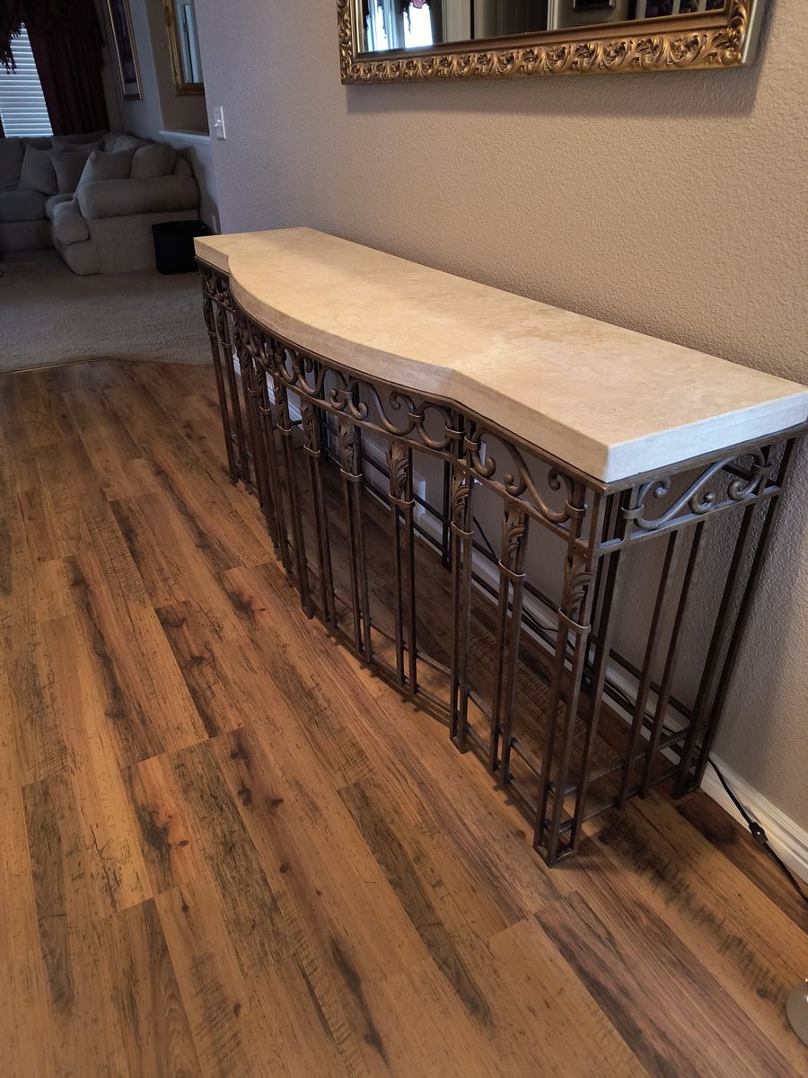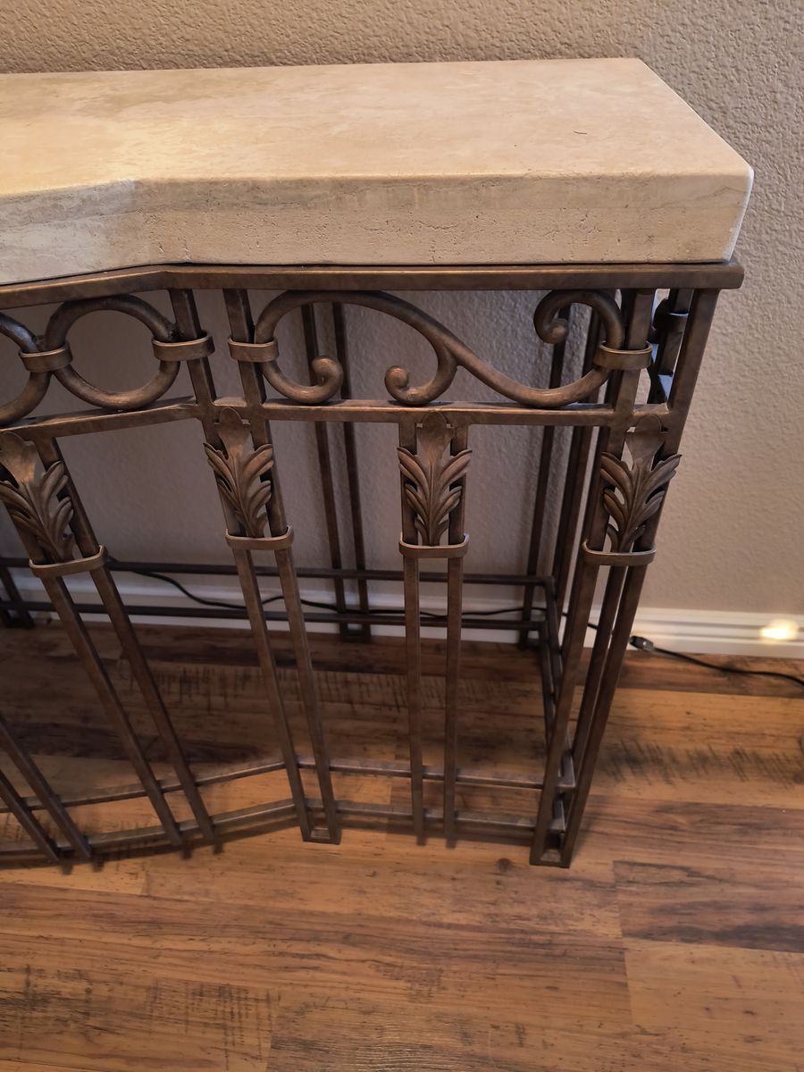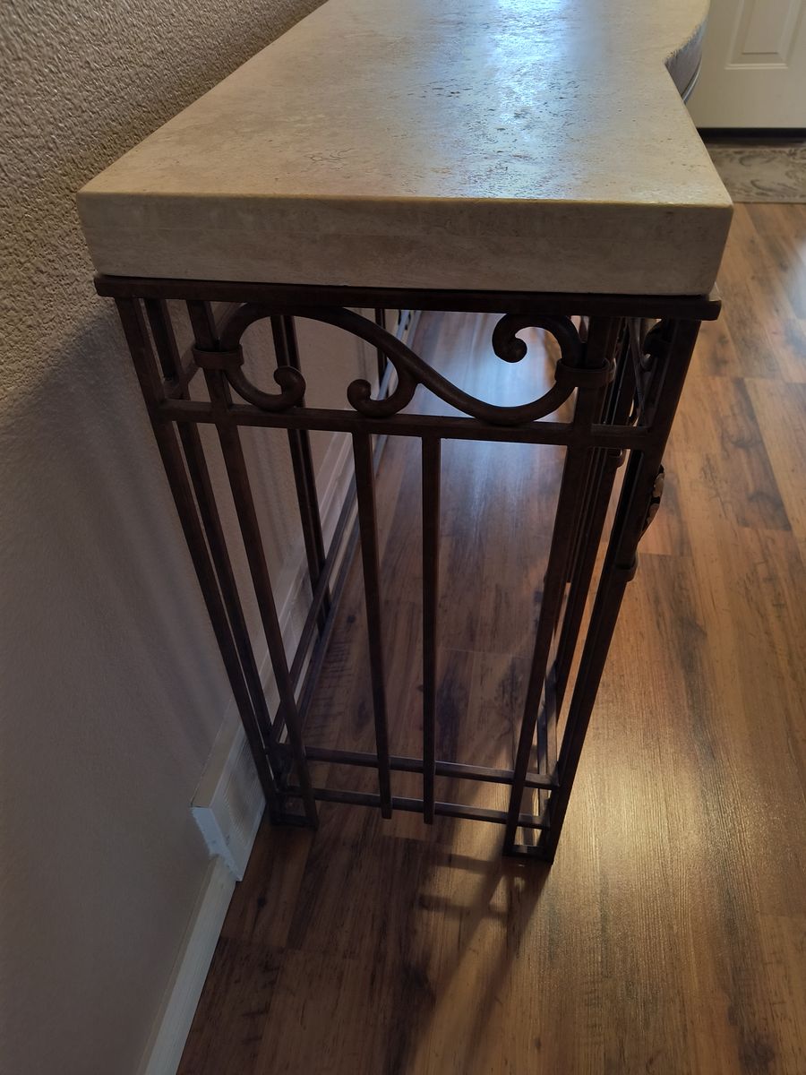 VenmoBeautiful sofa/hall table with stone top. 6'1" Long, 2'9" Tall, 1'7" Wide. I purchased the table from an estate sale 20 years ago, so I am not sure how old it is.