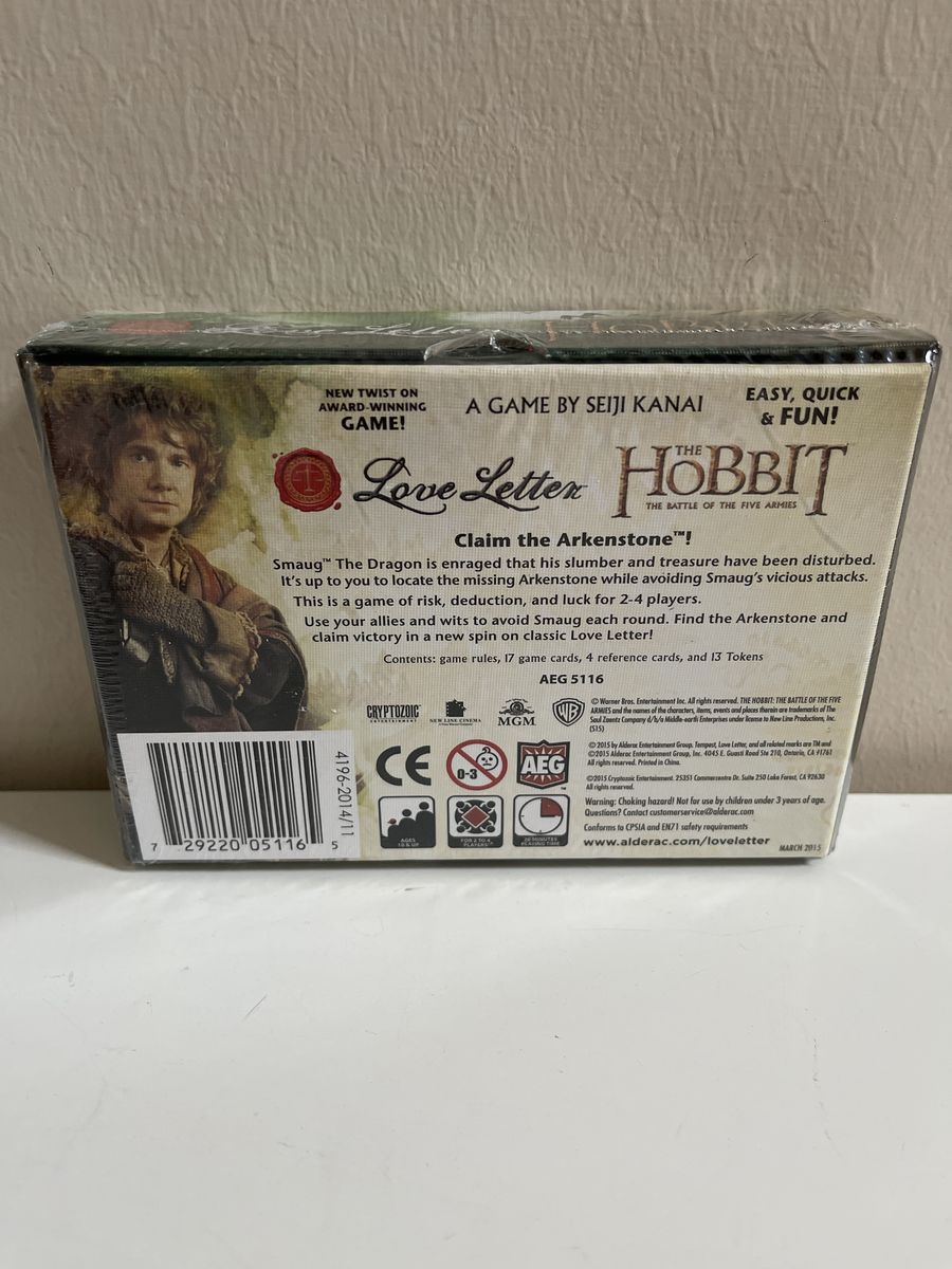 PayPalI have this col game called Love Letter: The Hobbit The Battle of the Five Armies, a game by Seiji Kanai. It’s new in the shrink wrap.