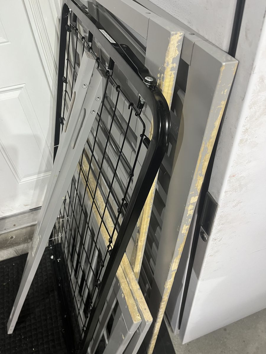 Crib needs tlc! If you have more time than money this is the crib for you!! Sturdy just not a looker.my son decided to beat up and had issues with chew it during teething. No mattress included. All hardware and legs included. If not taken goes in the trash!