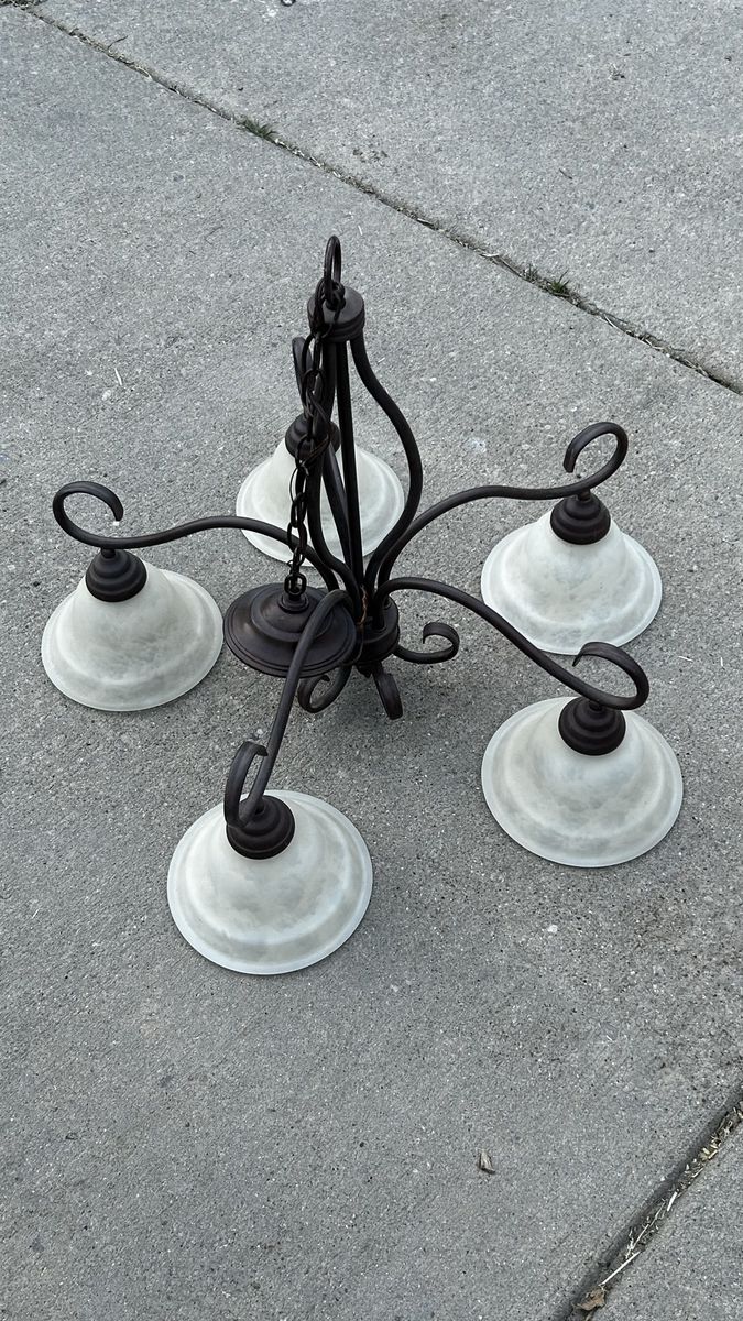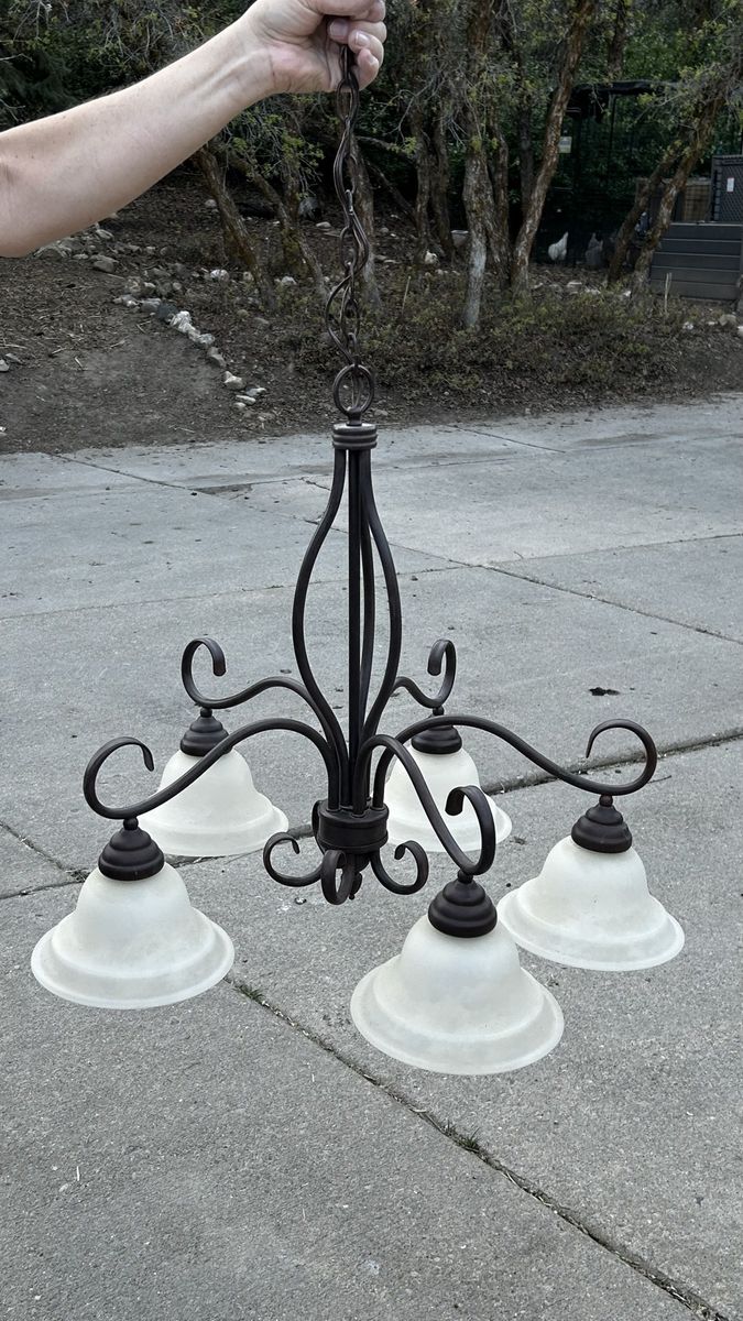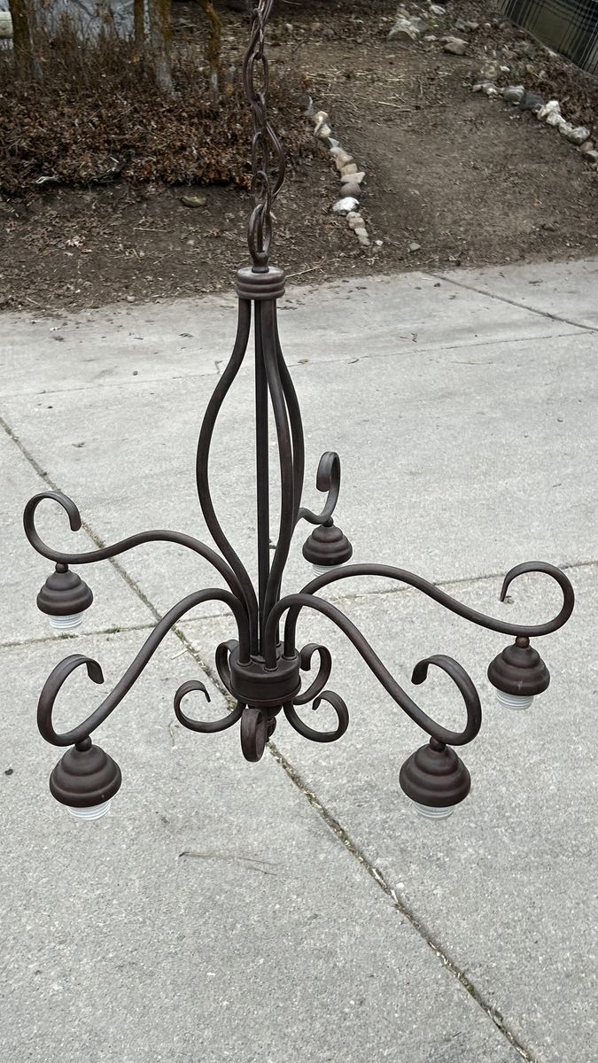 This is a beautiful wrought iron chandelier with 5 light sockets. Cash at pick up in Highland UT.