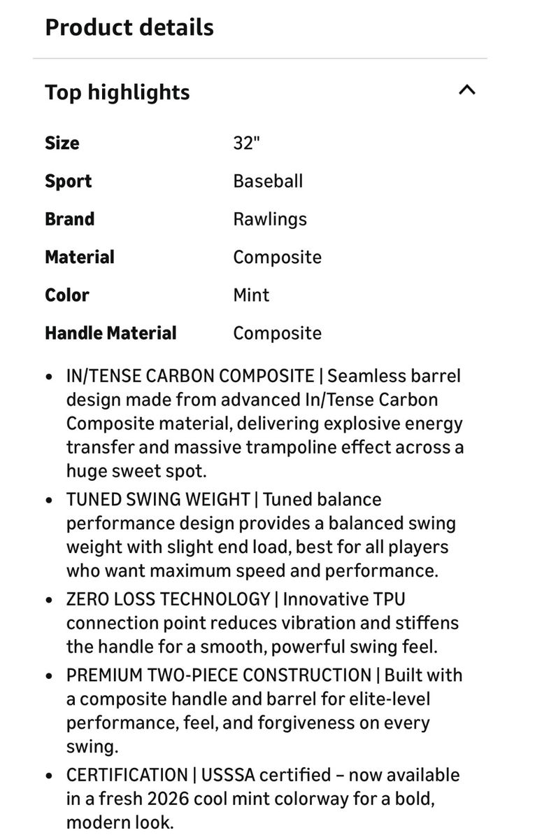 Venmo2026 Rawlings ICON 2-3/4 32 23OZ Bat Brand New Cash Preferred Will Accept Venmo Pick Up In Roy