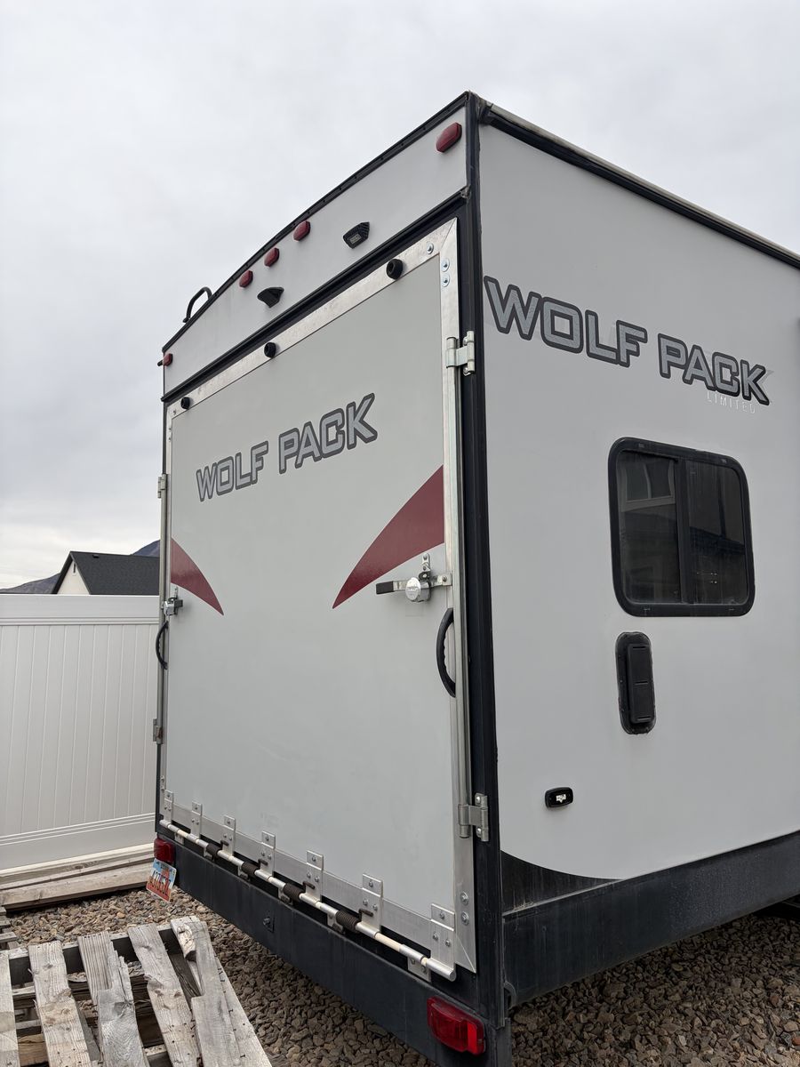2016 wolf pack 38’ trailer 25 living and 12’ garage
