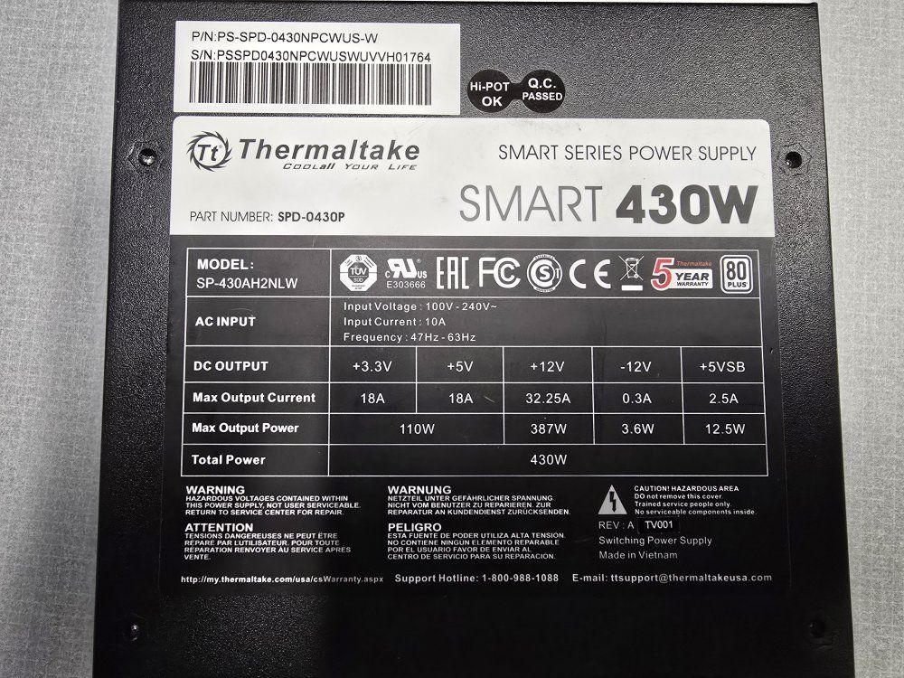 VenmoLIGHTLY USED Thermaltake smart series 430W power supply. Has 80Plus certification for efficiency. Great for a PC build or upgrade. Goes great with the GTX 1660 Super I am selling with it (see my listings)
