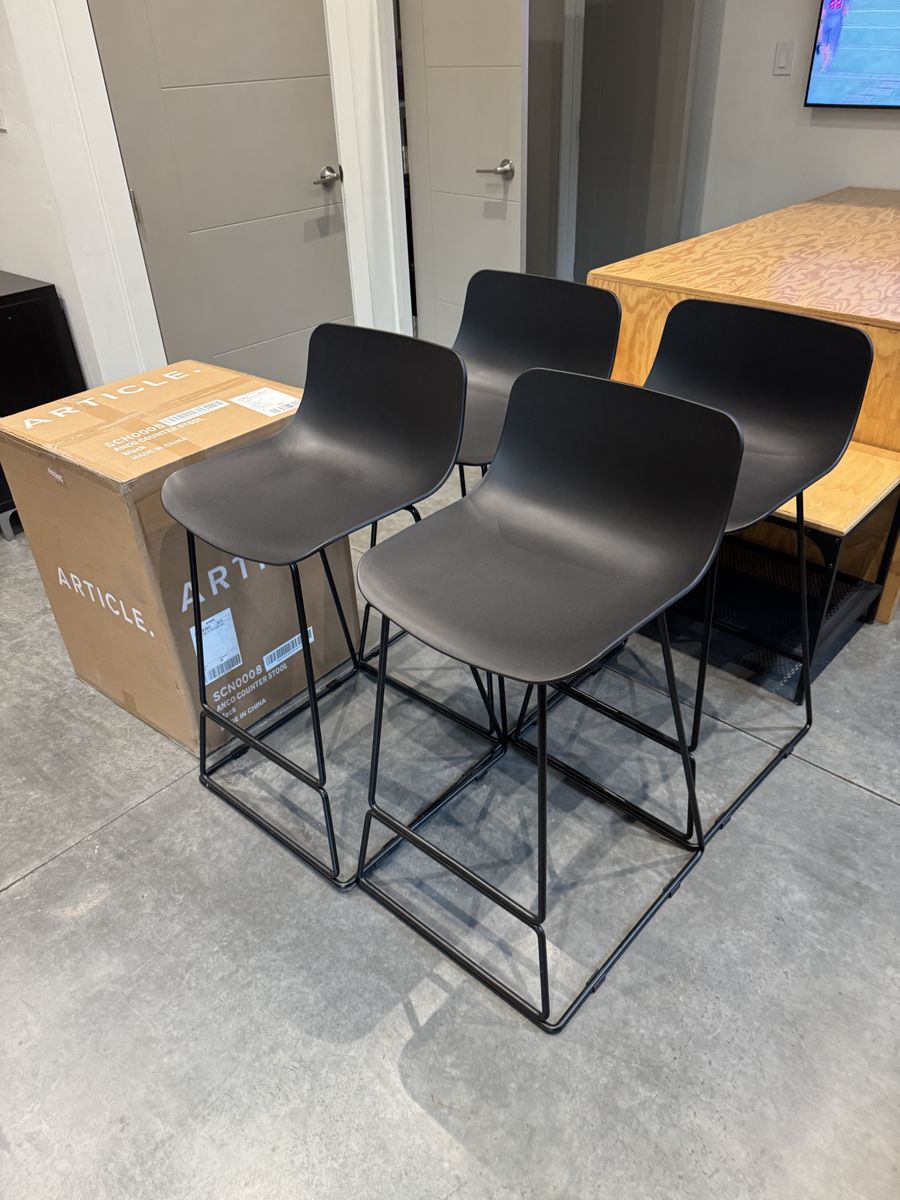 ApplePaySet of 5 beautiful black "Anco" barstools from Article. One is still in the box. Barely used in an office. Bought for $119 each. Selling for $65 each or $300 for the set.