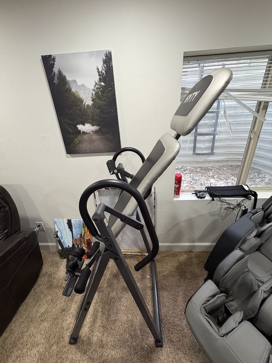 VenmoLike new Inversion table. Measurements on photos. HYTY Massage Inversion Table for Back Pain Relief - Back Stretcher Machine with Adjustable Headrest, Foldable Design, Back Inverter/Strength Training, 300 Lbs Capacity $100 cash/venmo in Draper