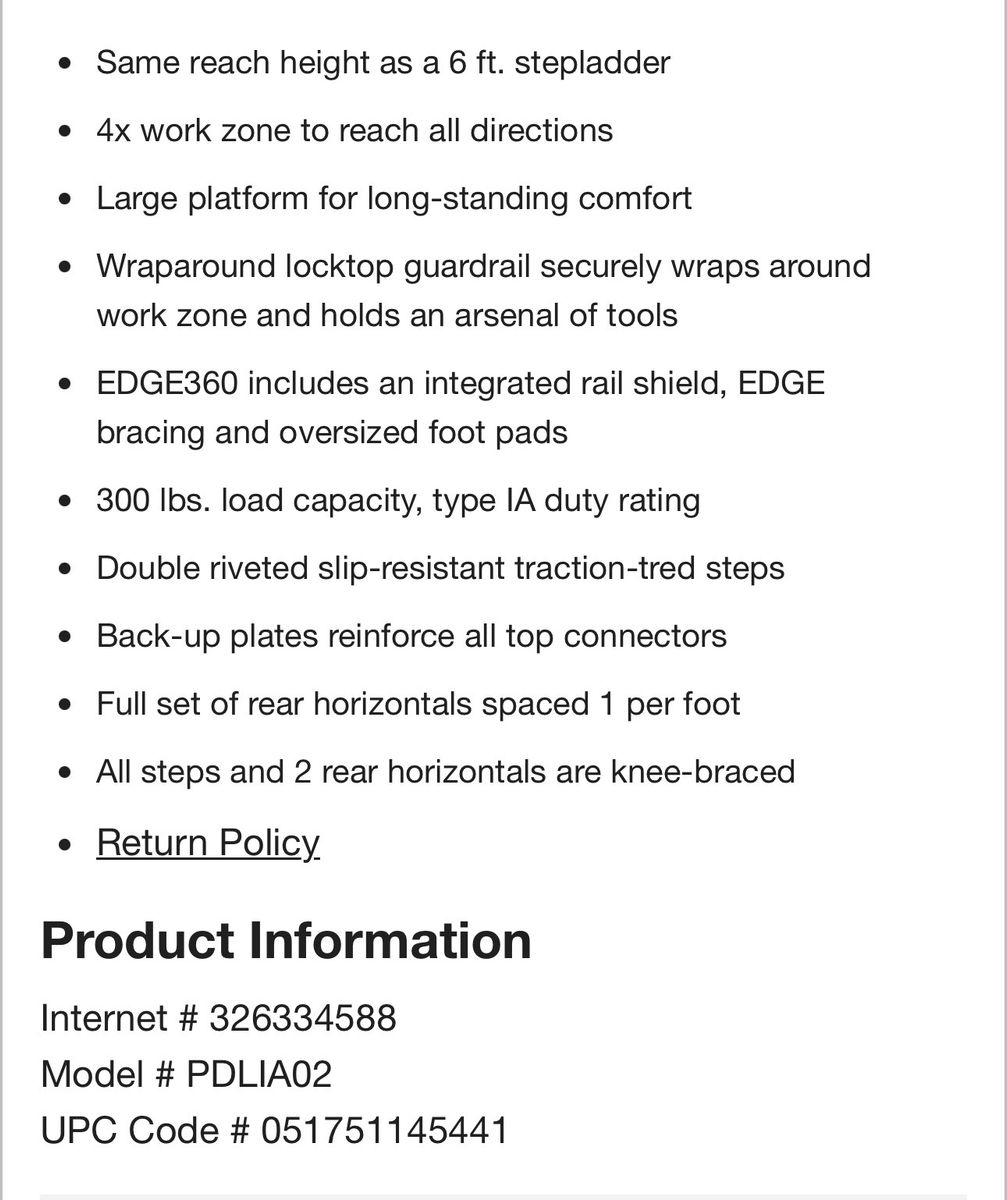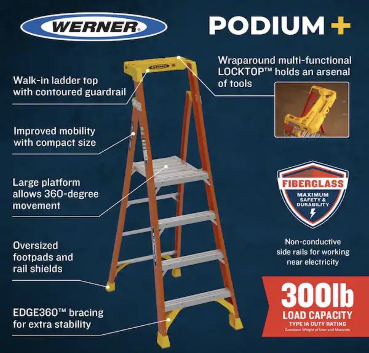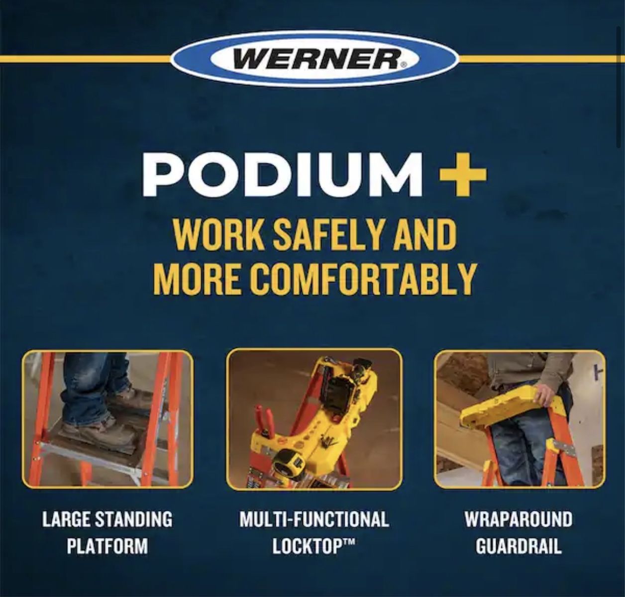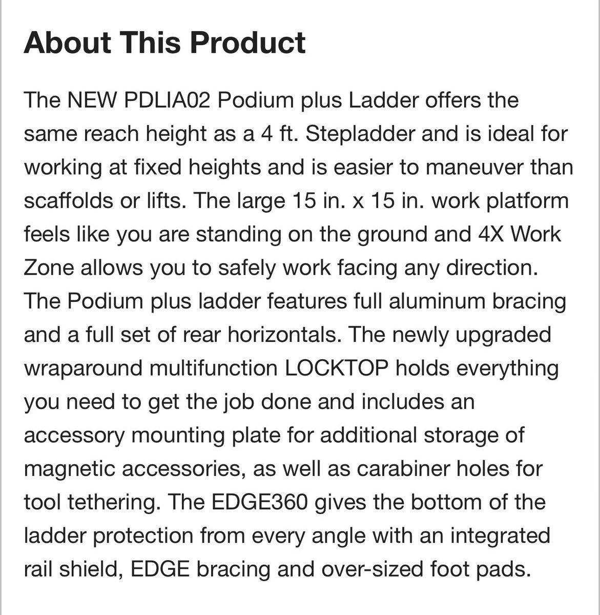 Description- 2’ Tall PODIUM+ heavy duty work platform/ladder with 300 pound capacity See photos for more product information and specifications.