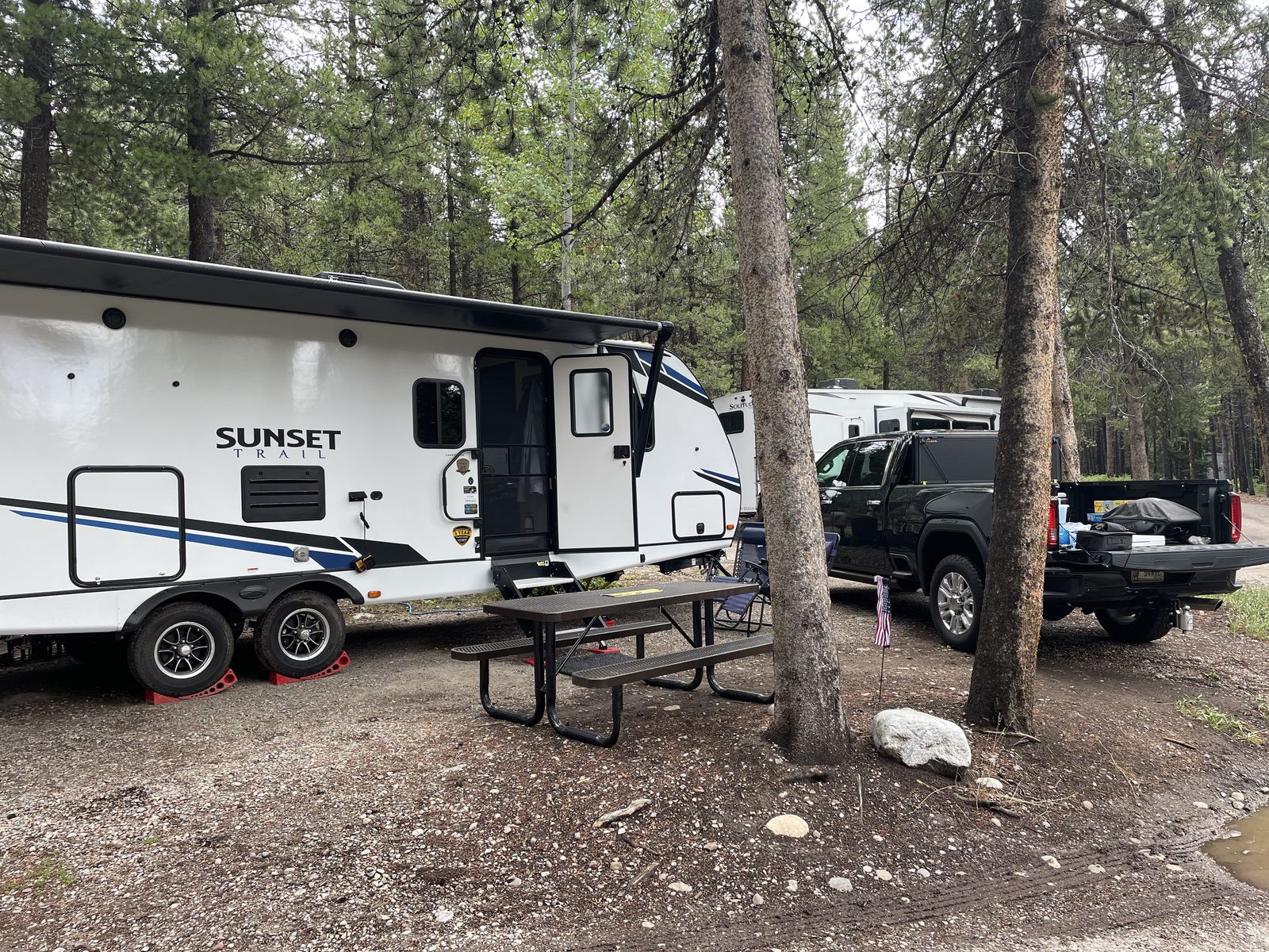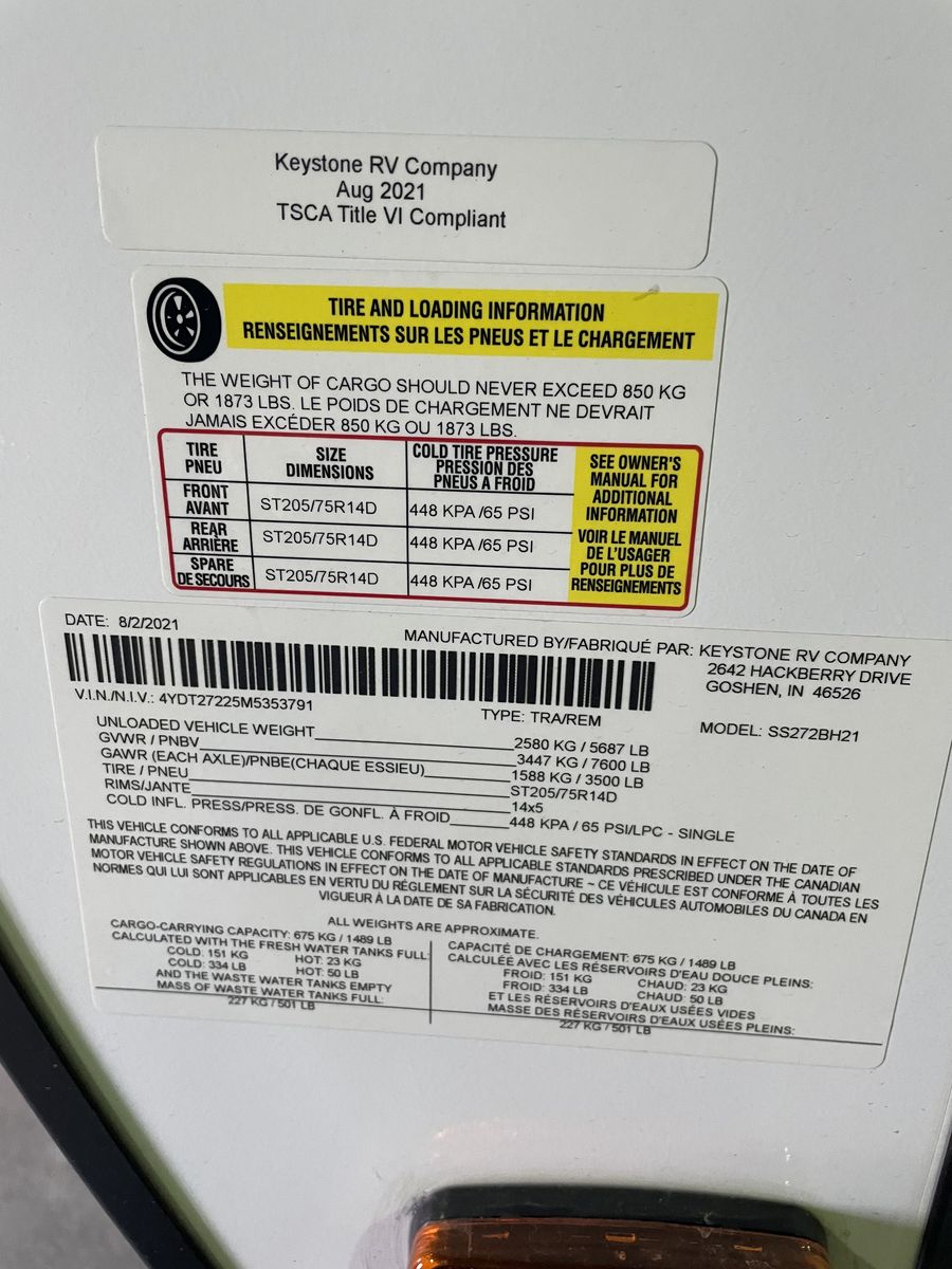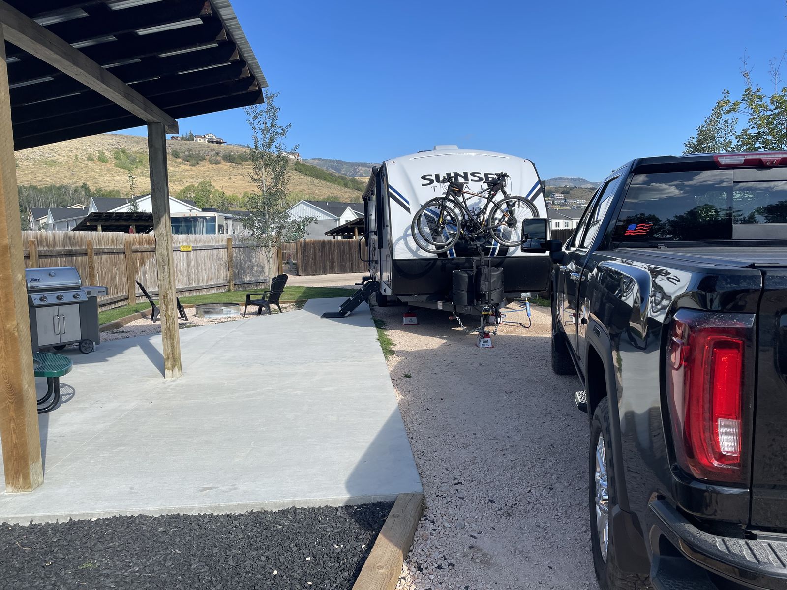 Excellent condition, many upgrades, stored indoors or under cover. Includes trailer hitch w/ rock tamers, 2 tanks, 2 batteries, solar system, wifi thermostat, bike rack, rear camera (GMC), upgraded mattress, outdoor grill/fridge (never used), tv in bedroom, Goodyear endurance tires.