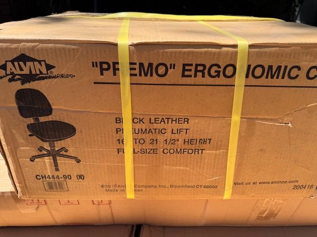 VenmoNew in the box. Alvin CH444-90 Black Leather Premo Office Height Ergonomic Chair, Backrest provides solid orthopedic spine support and full-size upholstered seat is contoured for added comfort. We are asking $60.00