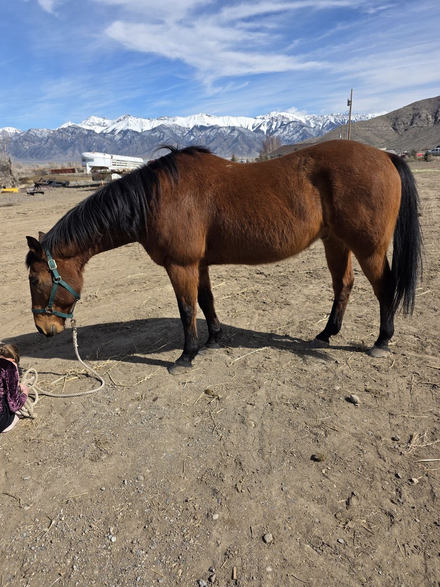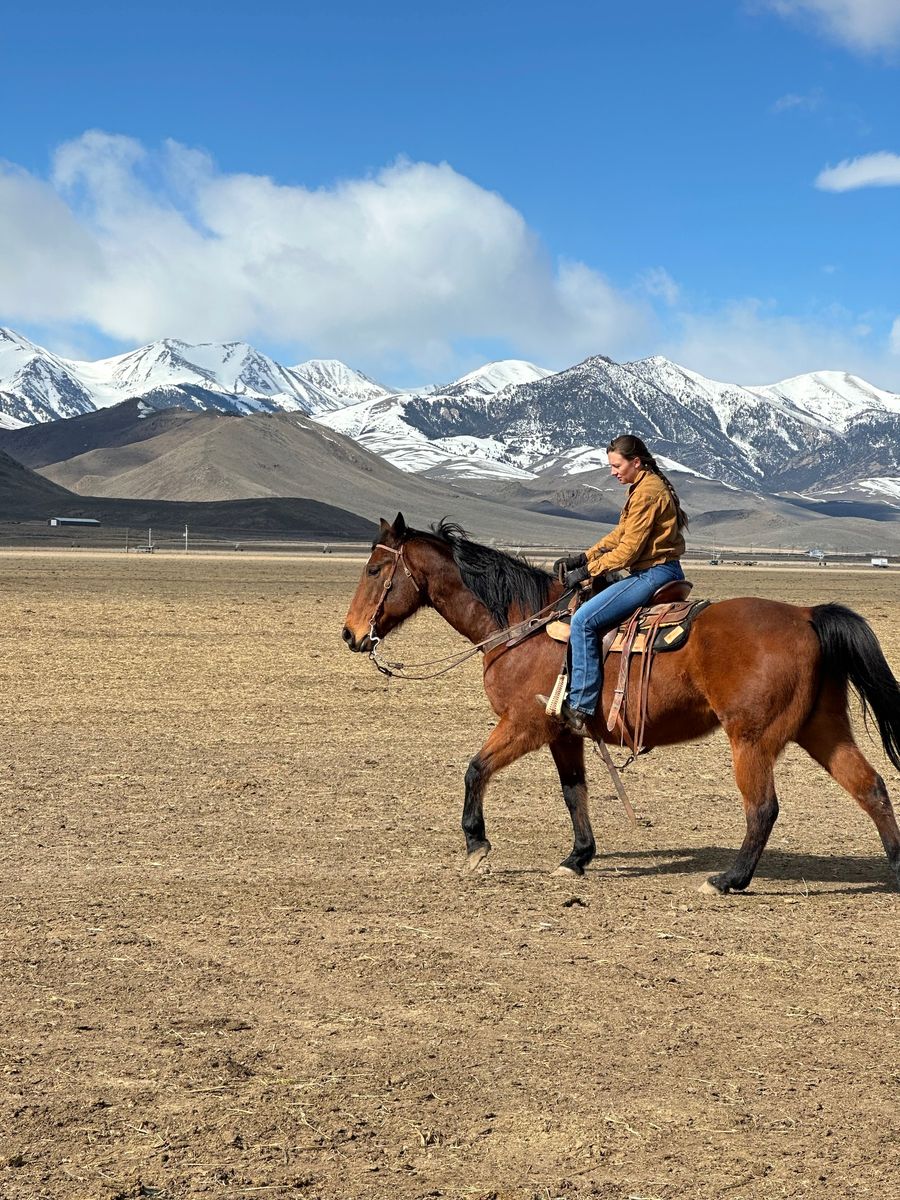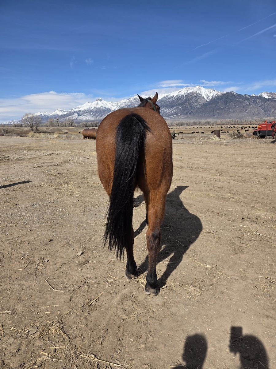 Owned him for the last 12 years, but he hasn’t been used much in the last 9 years while I've been raising kids. So he is out of shape and can be pushy. He has some arthritis setting into his right hip. It improves greatly with exercise. He will not be a horse for 12 hour days, in steep terrain. Which is why he is for sale. Would be fine for a step up horse or intermediate rider wanting some more experience. He can be forward and act like he has things to do, but actually isn’t that much horse.