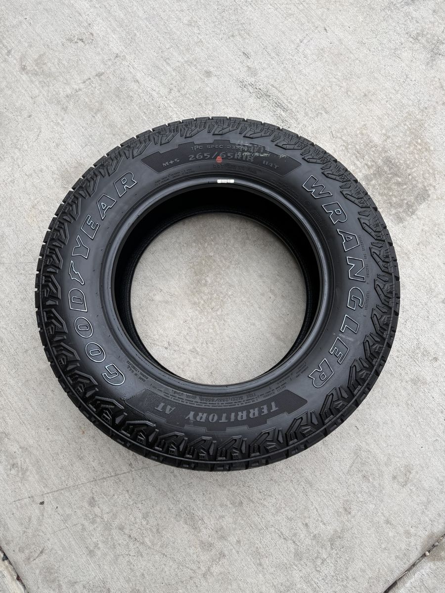 ApplePaySet of 4-265/65R18 Goodyear Wrangler Territory AT New only 100 miles in excellent condition asking $600 Text anytime 385-402-2292
