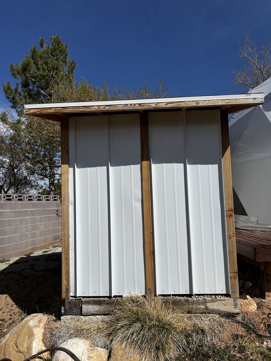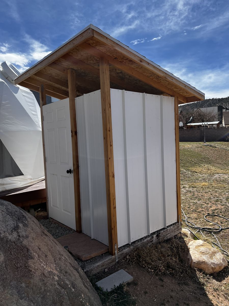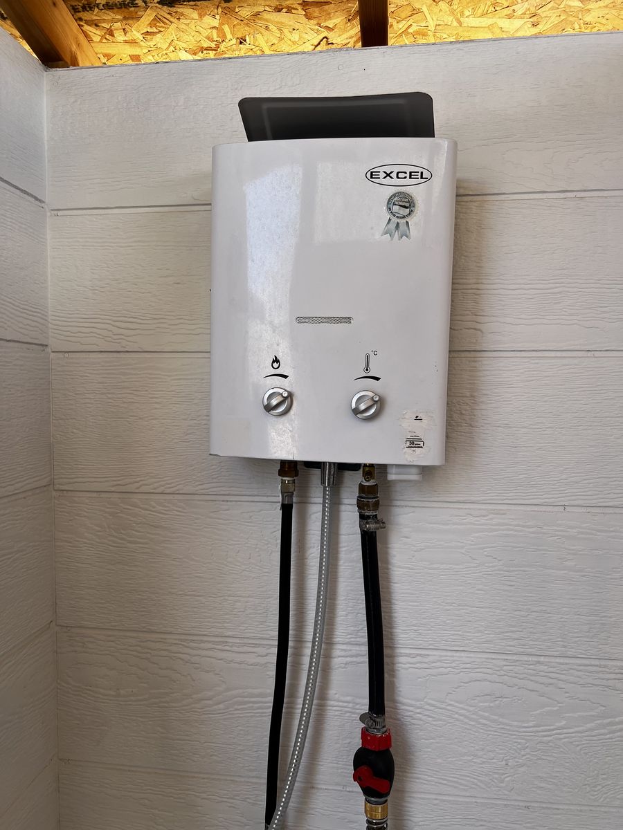 It also comes with the outdoor shower that has an on demand propane water heater and a composting toilet.