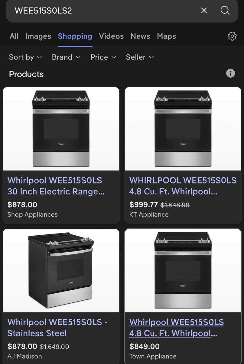 ApplePayBrand new Whirlpool slide-in electric range (model WEE515S0LS2).