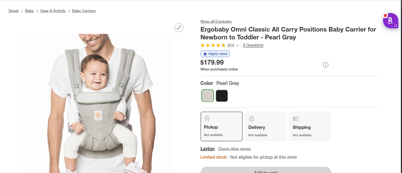 VenmoNEW - Ergobaby Omni Classic All Carry Positions Baby Carrier for Newborn to Toddler - Pearl Gray