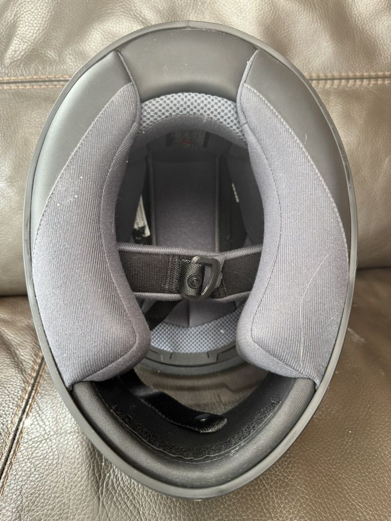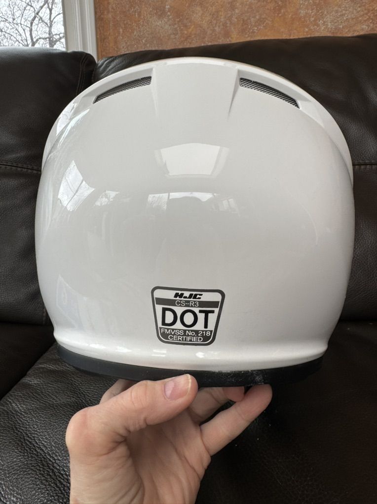 HJC CS-R3 full-face motocycle helmet like-new. Size XS. Worn only once. No scratches. Features a lightweight polycarbonate Shell, intermediate oval fit, and DOT certification. It includes an HJ-09 anti-scratch shield, a removable Nylex interior, and adequate ventilation, a solid choice for the price.