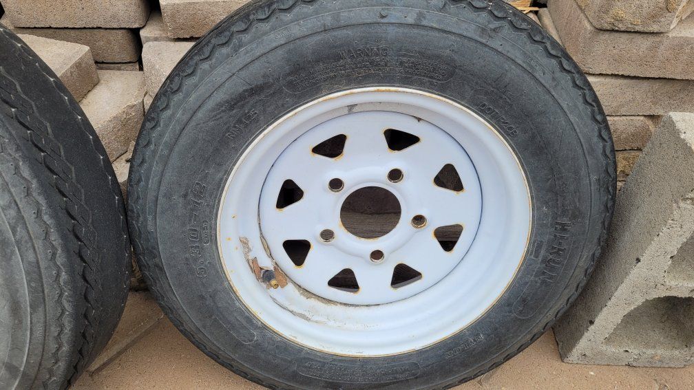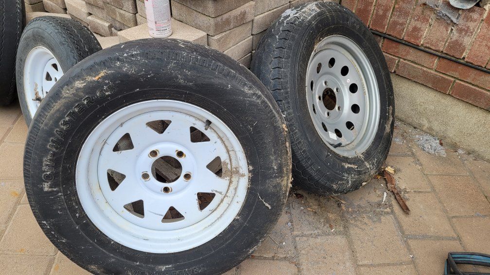 Venmoused utility trailer tires and rims. tires are worn but rims are good. $5.00 ea. 12" and 15" rims