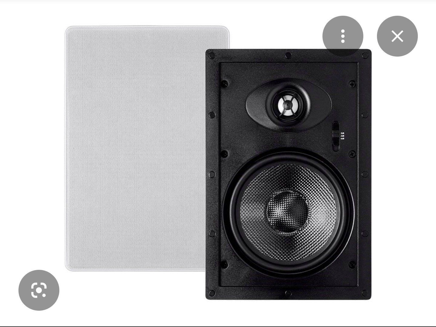 Zellebrand new still in the box never been used before Monoprice 2-Way Carbon Fiber In-Wall Speakers - 8 Inch (Pair) With Paintable Magnetic Grille - Alpha Series,BLACK comes with both speakers!