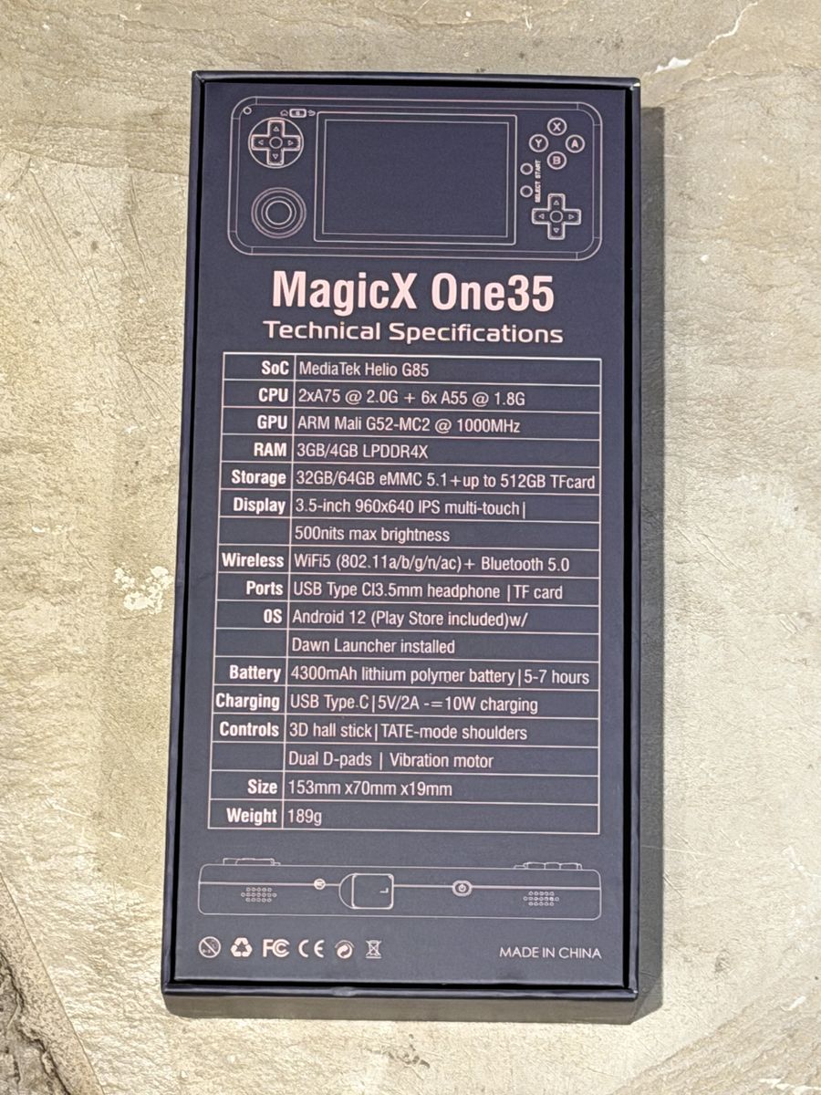 Helio G85 power, 4GB RAM, 128GB microSD card full of games on 34 retro platforms included. Android 12, Hall effect stick, 4300mAh battery for long sessions.