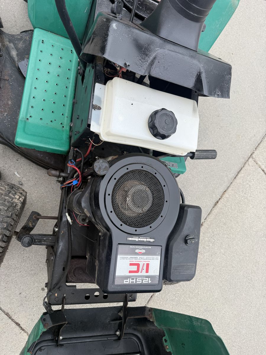 VenmoRuns perfect 12.5hp Briggs Manual transmission All tires good Blades good She’s no pretty but mechanically sound