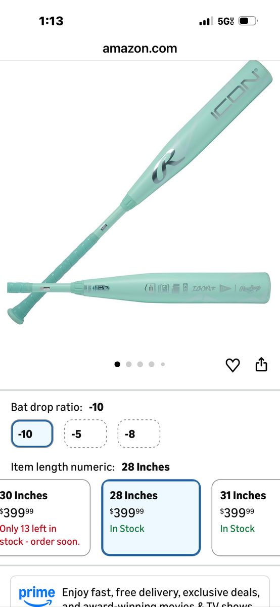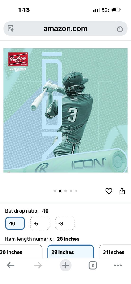 VenmoRawlings 2026 ICON 28” 2-3/4” 18 OZ (-10) USSSA Baseball Bat Brand New Cash Preferred Will Accept Venmo Pick Up In Roy
