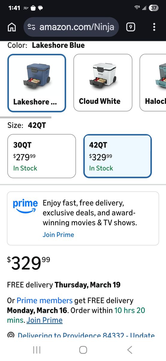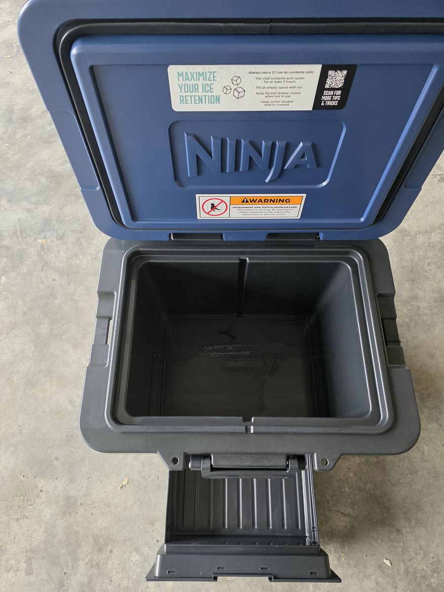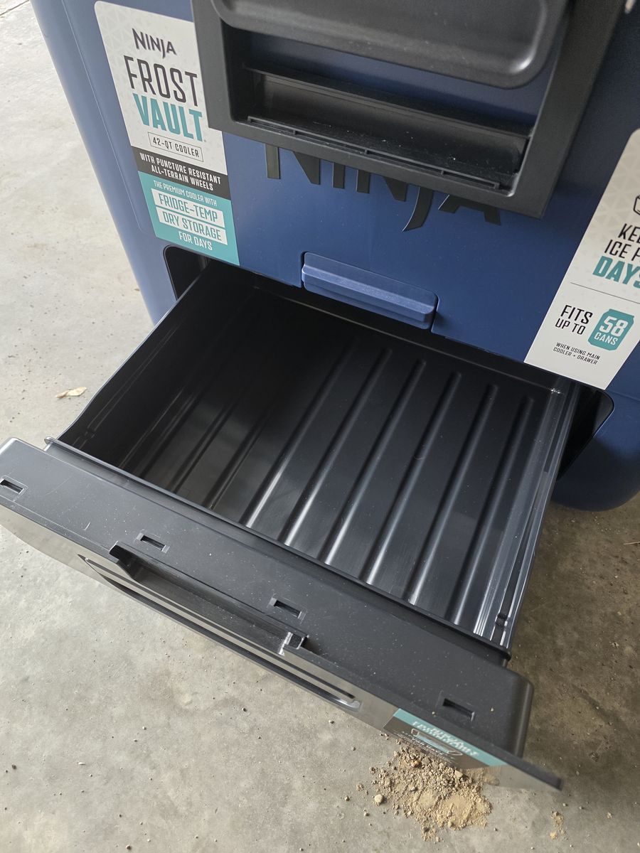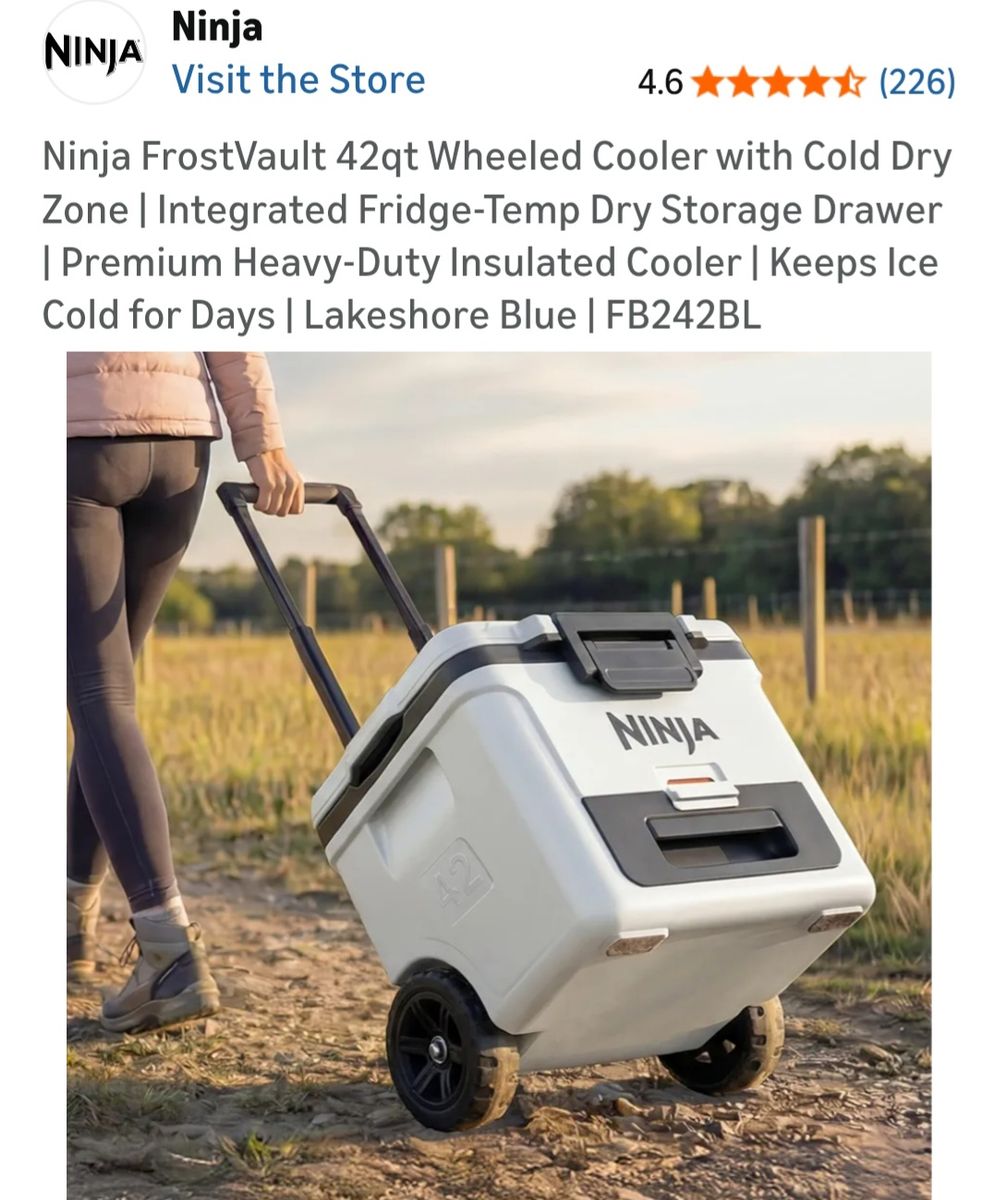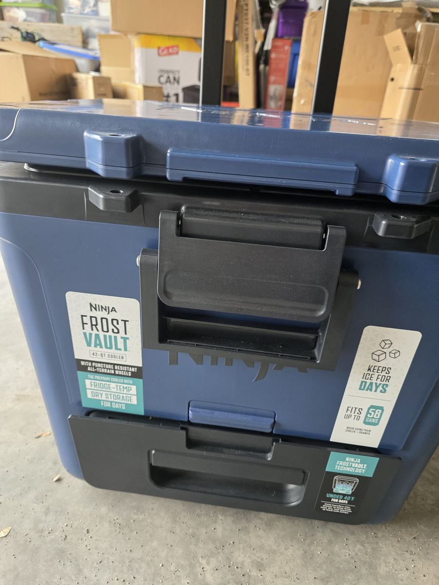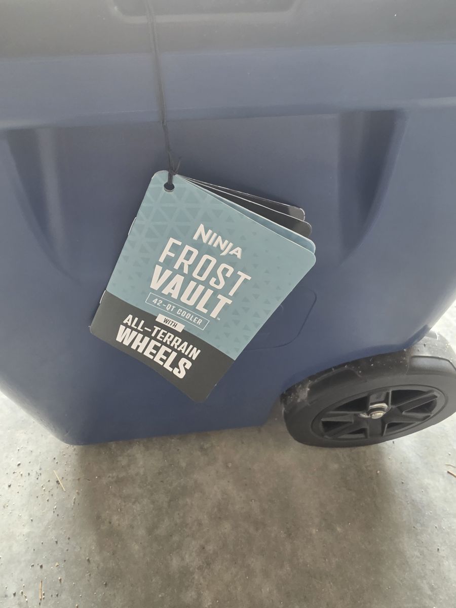 PayPalNew Ninja cooler with tags. Never used. Very well built cooler with separate sliding compartment to keep food from getting wet. Holds 58 cans of whatever. Bigger wheels with handle for sand etc. New on amazon is $329.