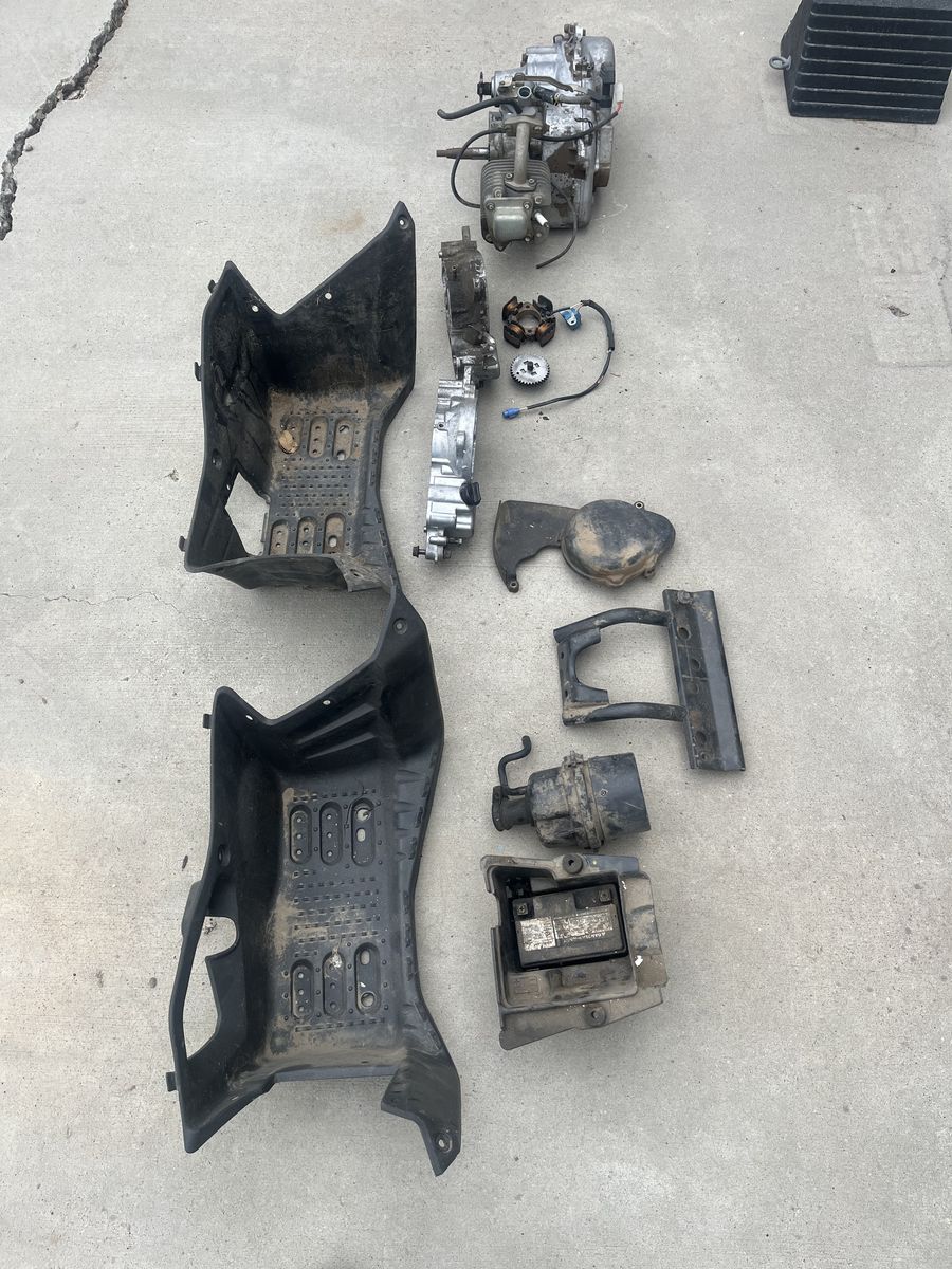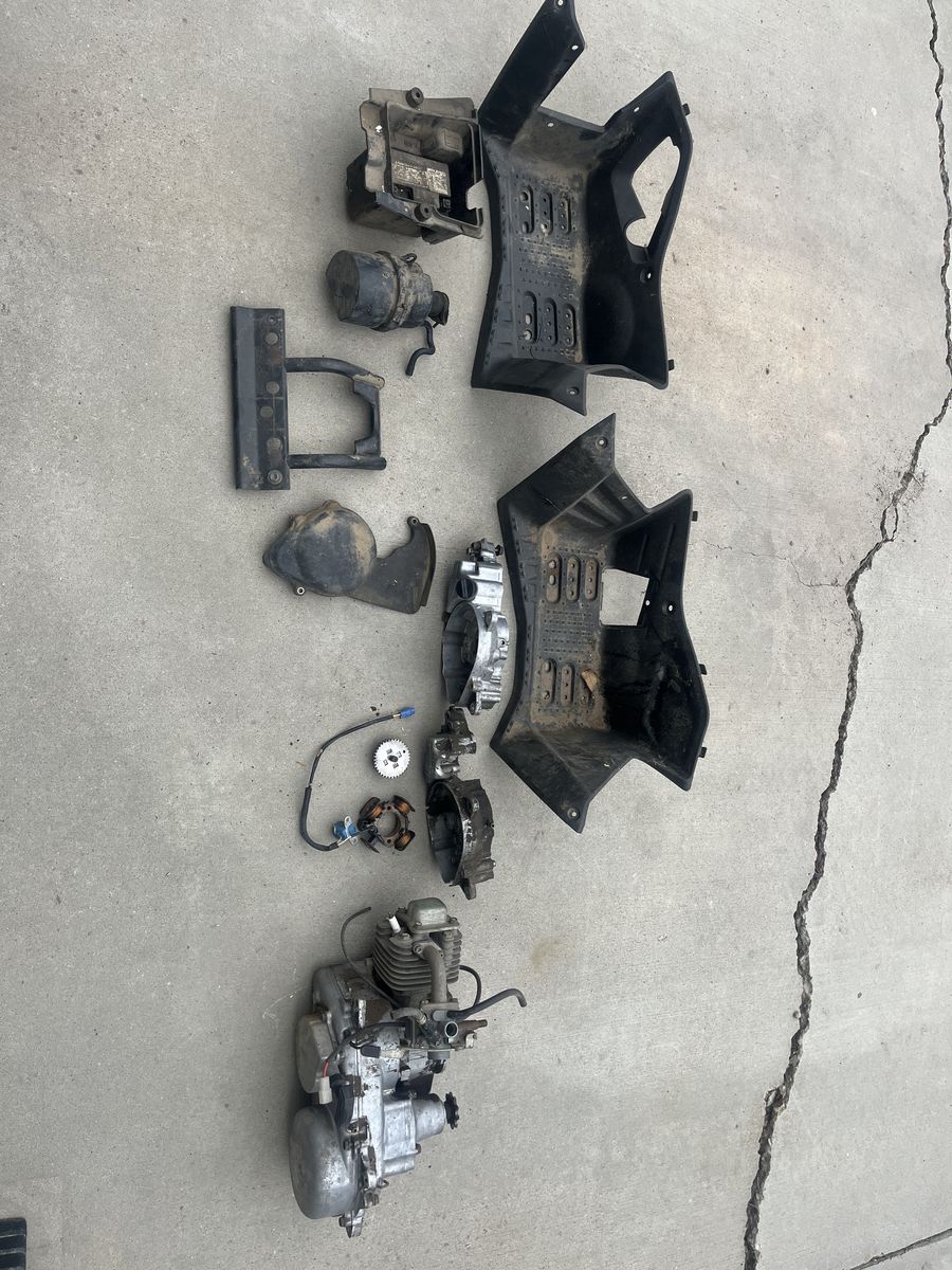 VenmoEarly 2000’s Suzuki 50 quad sport engine and parts $50 Engine was running when chain broke and busted side case. Replacement side case comes with parts. Side boards, air cleaner and battery box. Stator pick up. No stator flywheel.