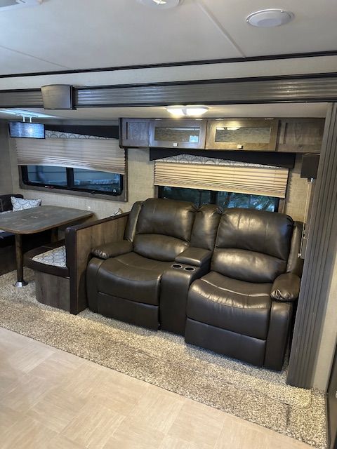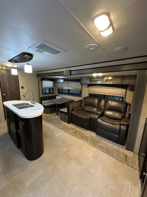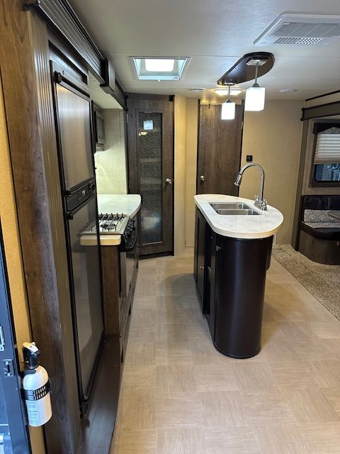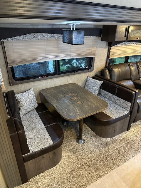 In addition to what is standard, this models include the Ultimate Package, solid surface counter tops, Convenient Island, radial tires, 15" aluminum rims, stainless steel appliances, enclosed underbelly, power tongue jack, black tank flush and LED power awning. Dutchman is the premium line of travel trailers and the Kodaik has the perfect layout. We bought this 2 years ago and didn't even use it in 2025! It has been maticulously cared for and is ready to go on your next outing. The Ultra Lite is designed to be pulled buy a standard size pickup or SUV. Don't wait, this won't last long.