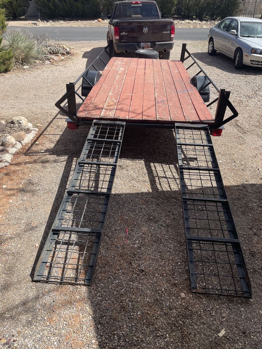 VenmoUtility/atv trailer Rear or side load. deck measures 13’6” x 6’ wide at the fenders 7’3” at the rails Newer lights, tires about 75% Can deliver anywhere between kanab and ogden middle of next week 17-19th $1500 obo