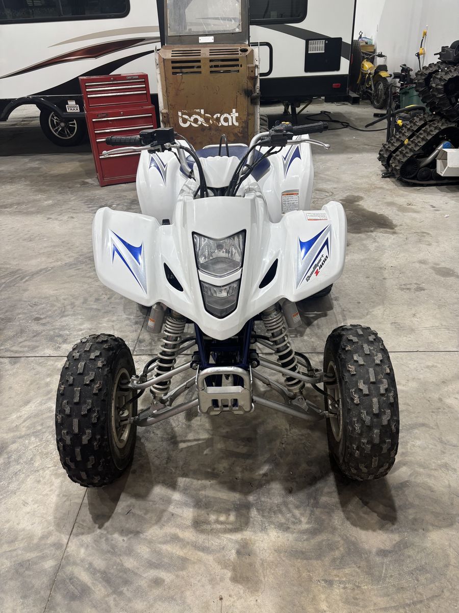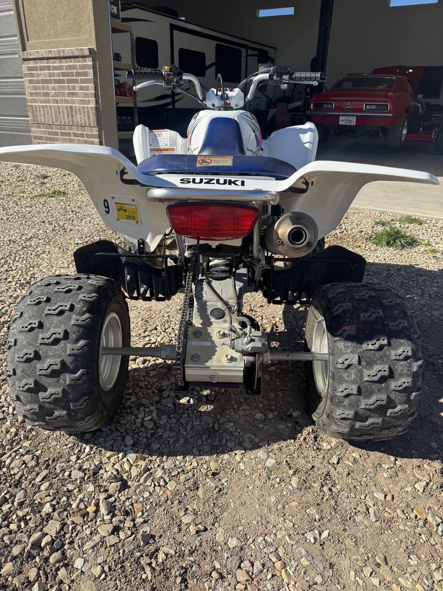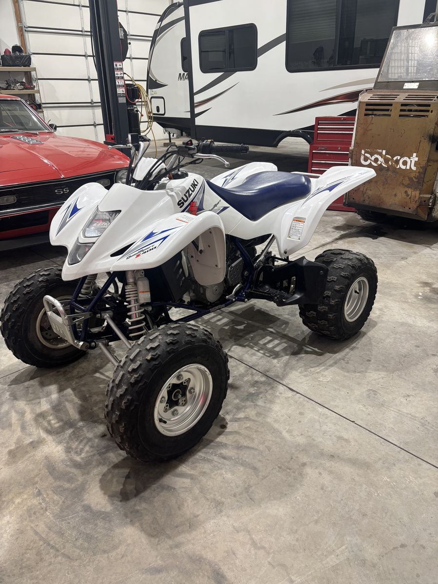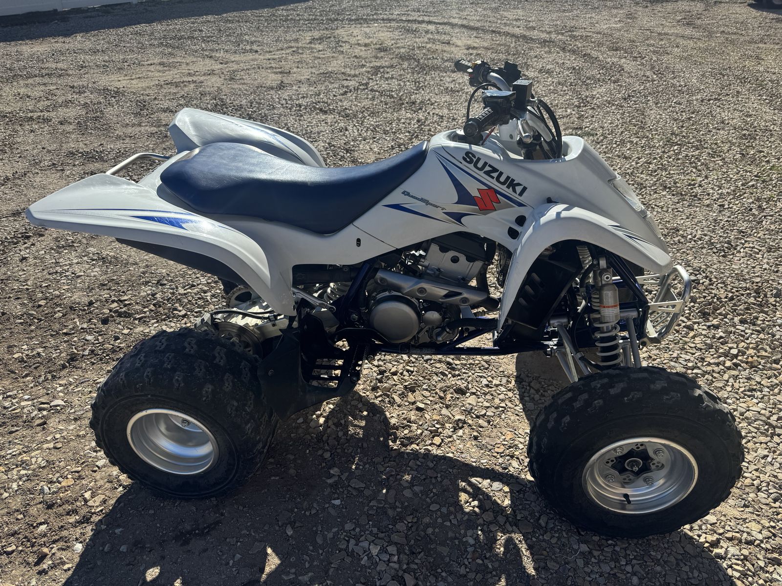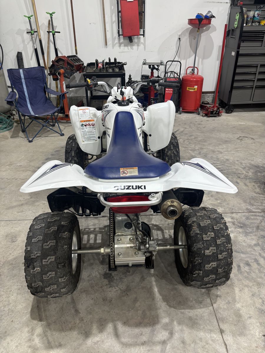 One owner Suzuki quad that is in great condition with minimal wear. Machine is all stock and still has the original tires. very low hours always maintained and garage kept. has a set of paddle tires that come with it as well.