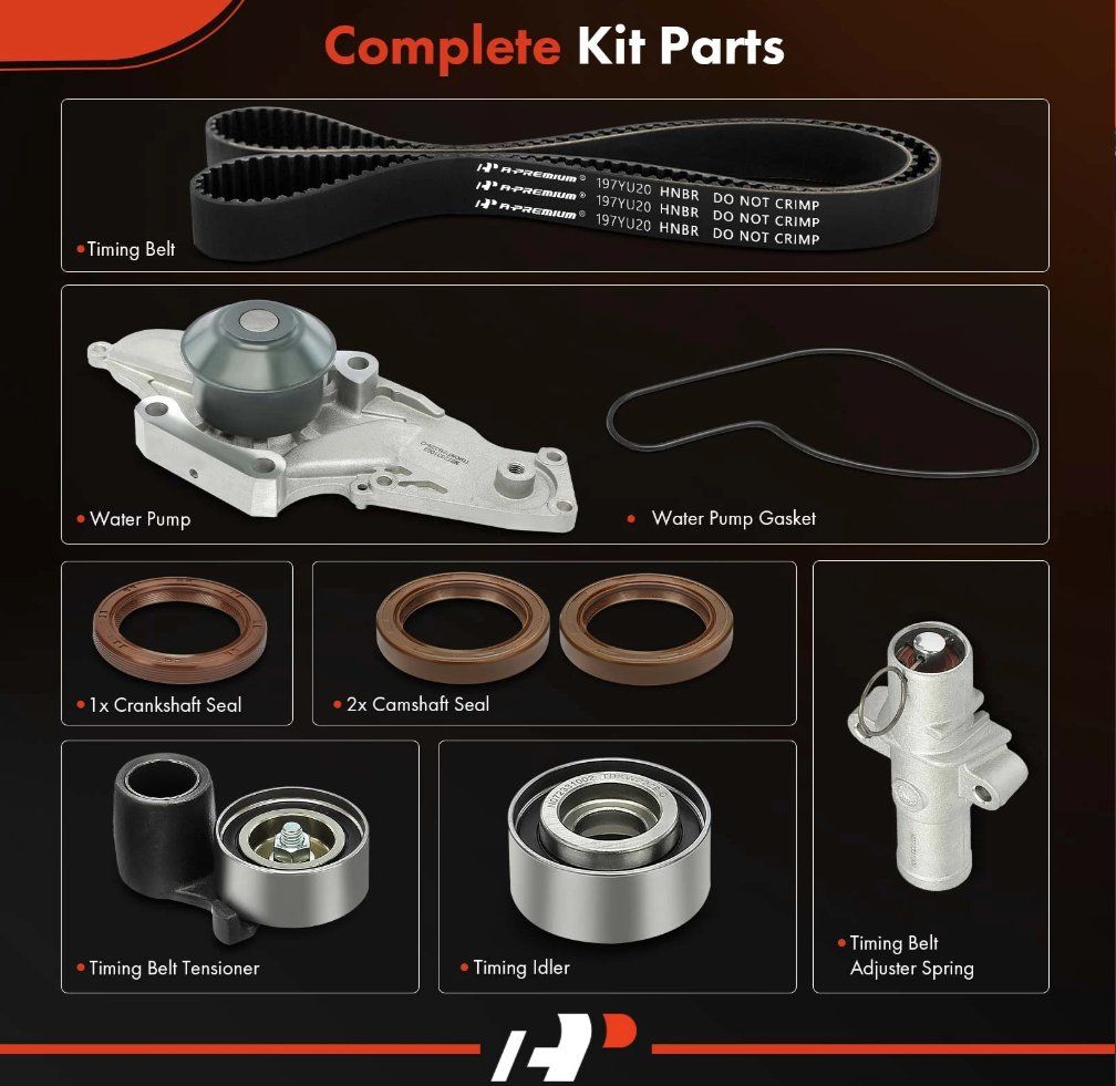 VenmoBrand new A-Premium 8 piece Timing Belt Kit & Water Pump for Honda Accord, Pilot, Odyssey, Ridgeline and Crosstour and Acura MDX, RDX, RL, TL, and TSX. All the specific years are in the pictures. Asking $85. Text if interested 801-903-8337
