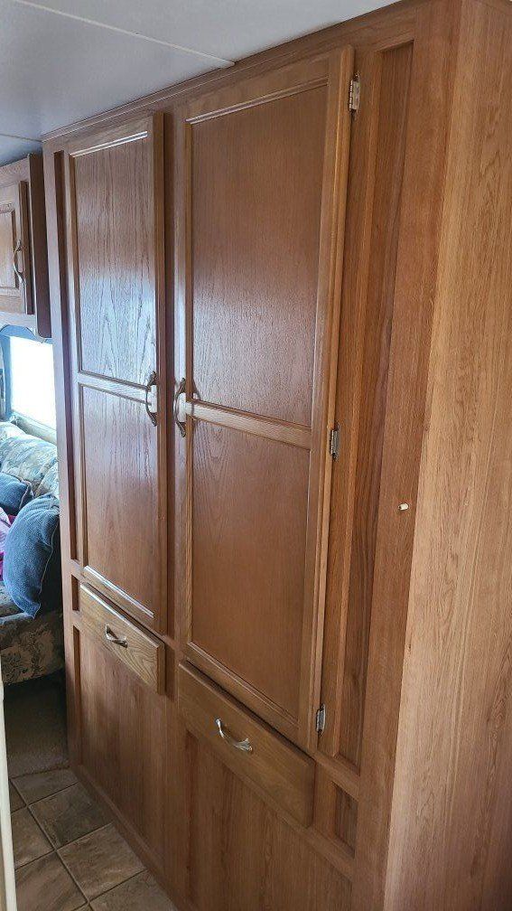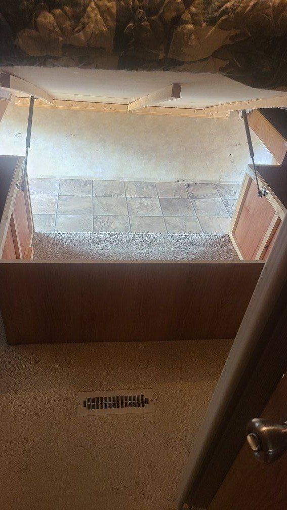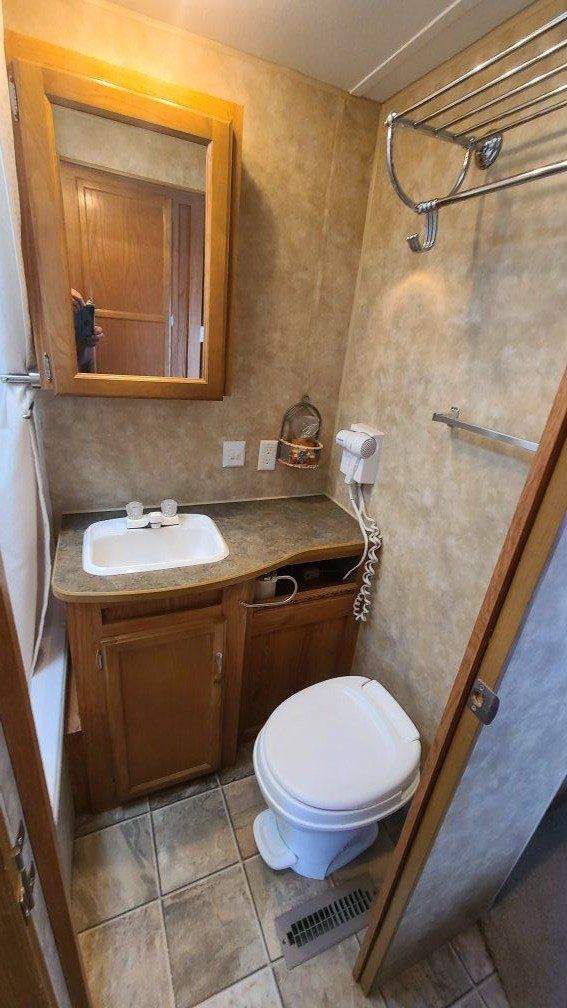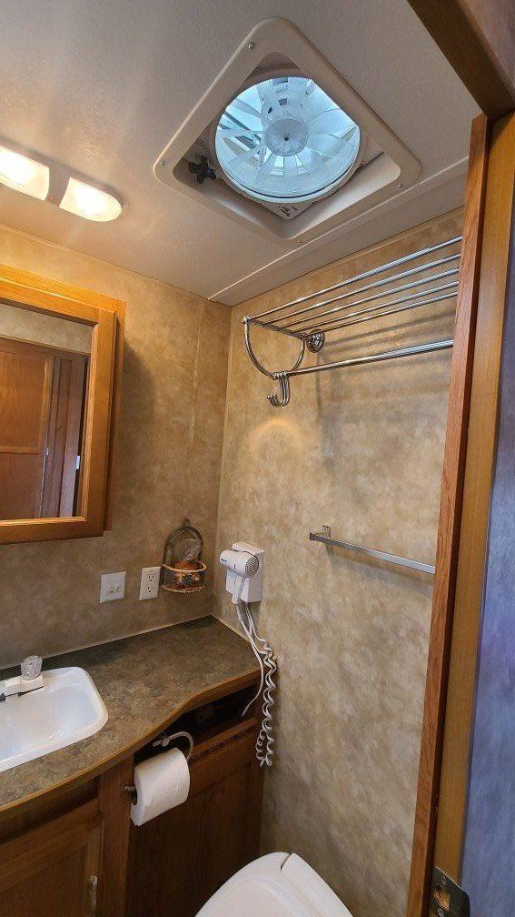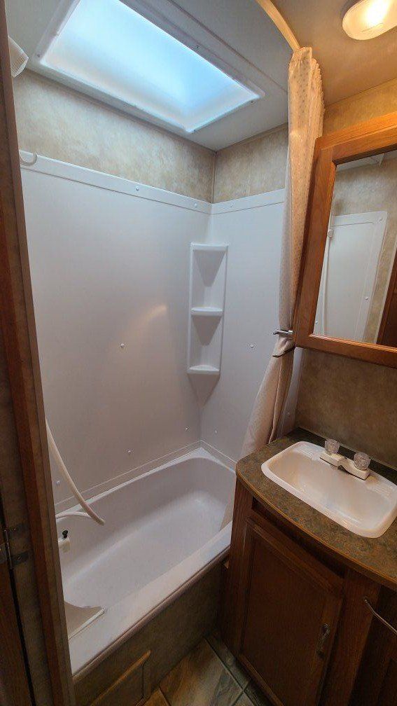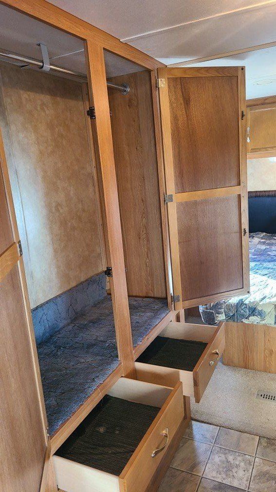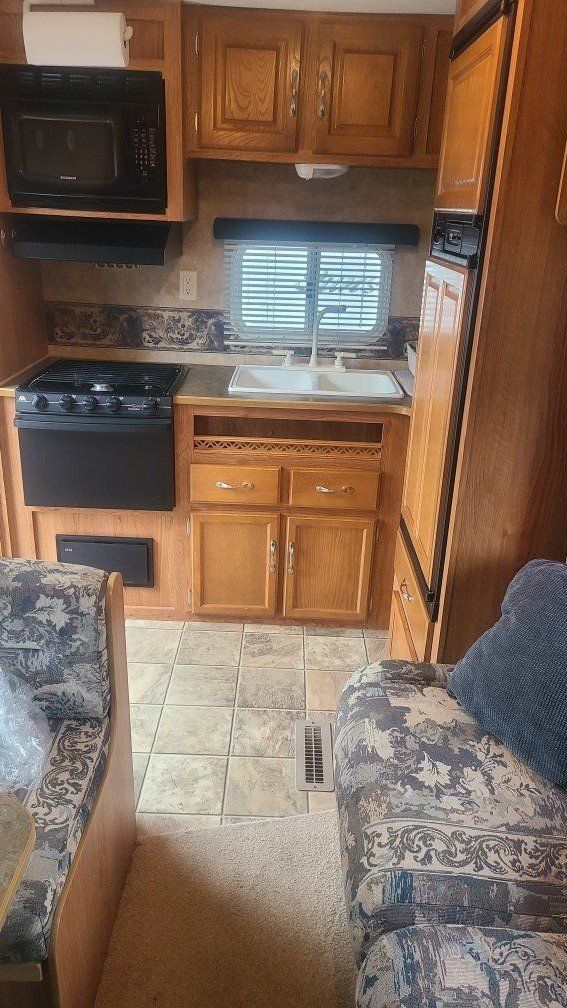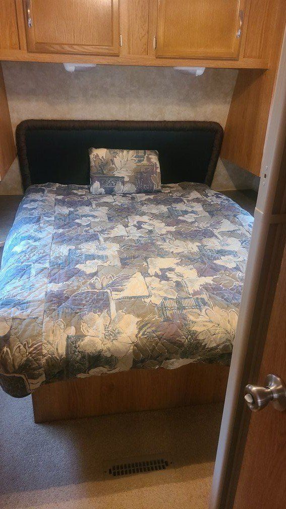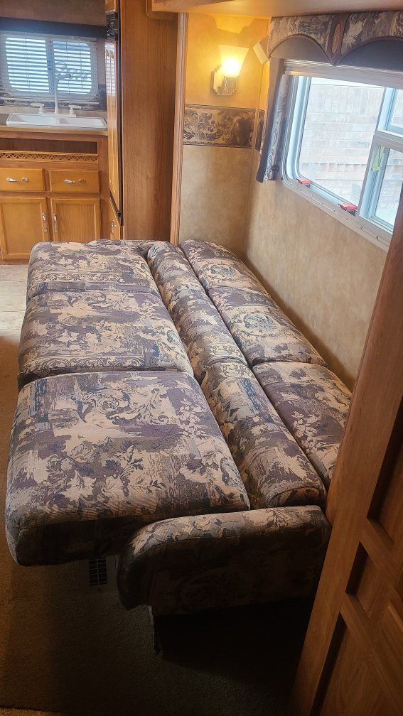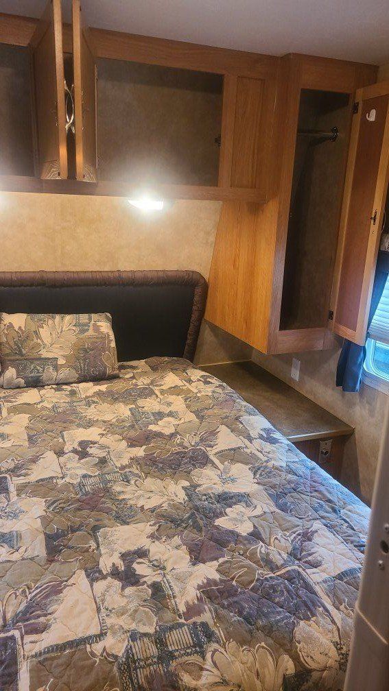 Inside features: Sleeps 5-6 depending on if some are small children walk around queen bed tub shower combo toilet microwave 3 burner stove oven double kitchen sink home theater electric or propane fridge A/C heater couch 44 wide 79 long big closet and lots of other storage including under the queen bed storage powered attic fan in bathroom Slide original paperwork
