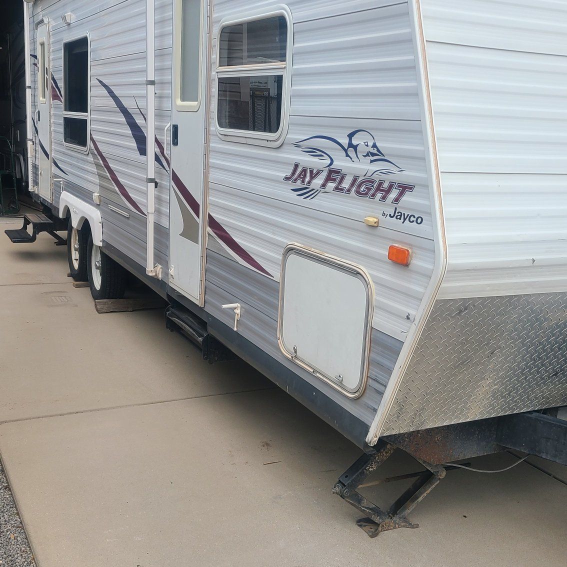 Just in time for your summer fun, a clean 25 RKS. Box length 25'7" tongue to bumper 28'7". Unloaded vehicle weight is 5205. No leaks. No scammers, codes or trades. Title in hand.