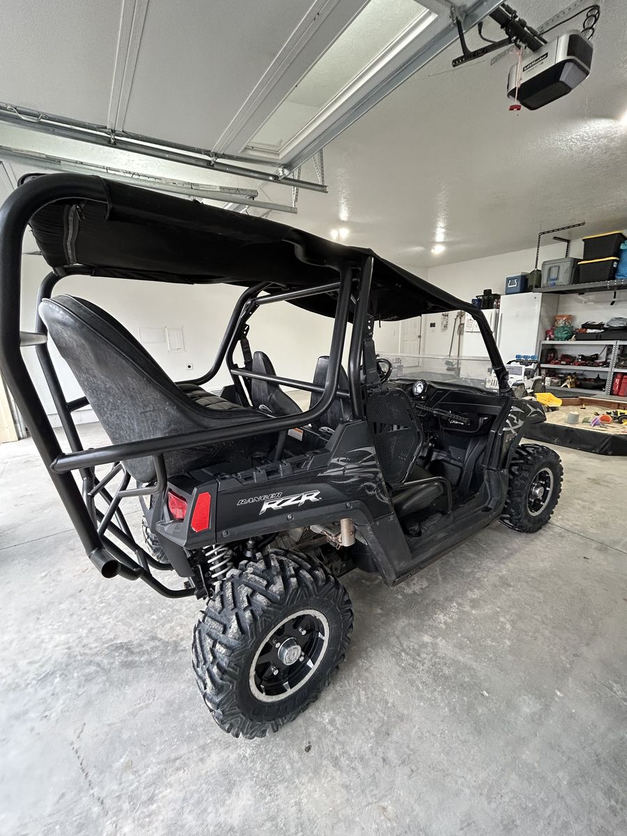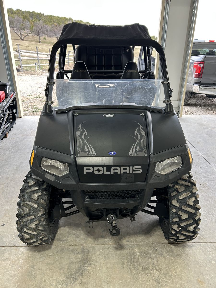 ZellePolaris Ranger RZR 800. Stealth Black limited edition color with electronic fuel injection. Has 5900 miles and 570 hours. Some add ons include: Full skid plate Rock sliders HID headlights Backseat Overhead storage bag Glove box Soft roof that covers both front and back seats Hard roof if backseat is taken off Half poly windshield 3500lb winch Snowplow Spare belt