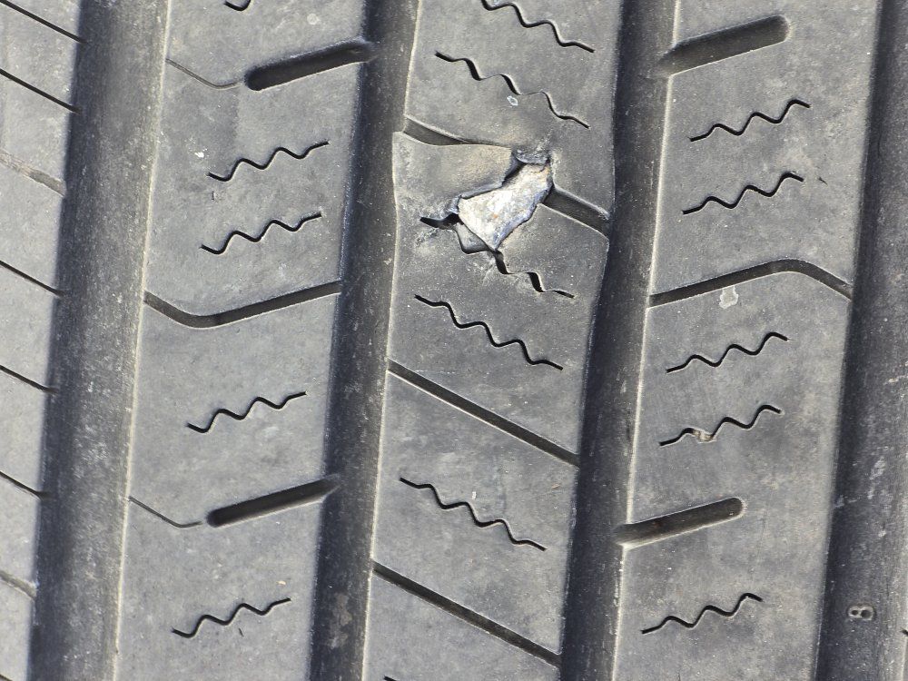 the rock made it lose Air, maybe rock could be removed and tire patched 5/32 tread.
